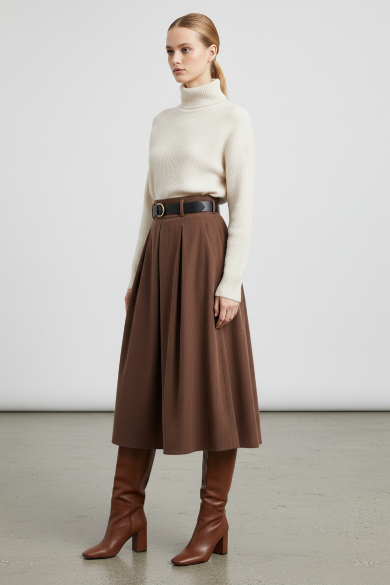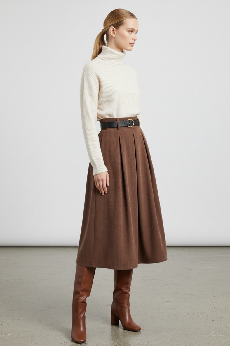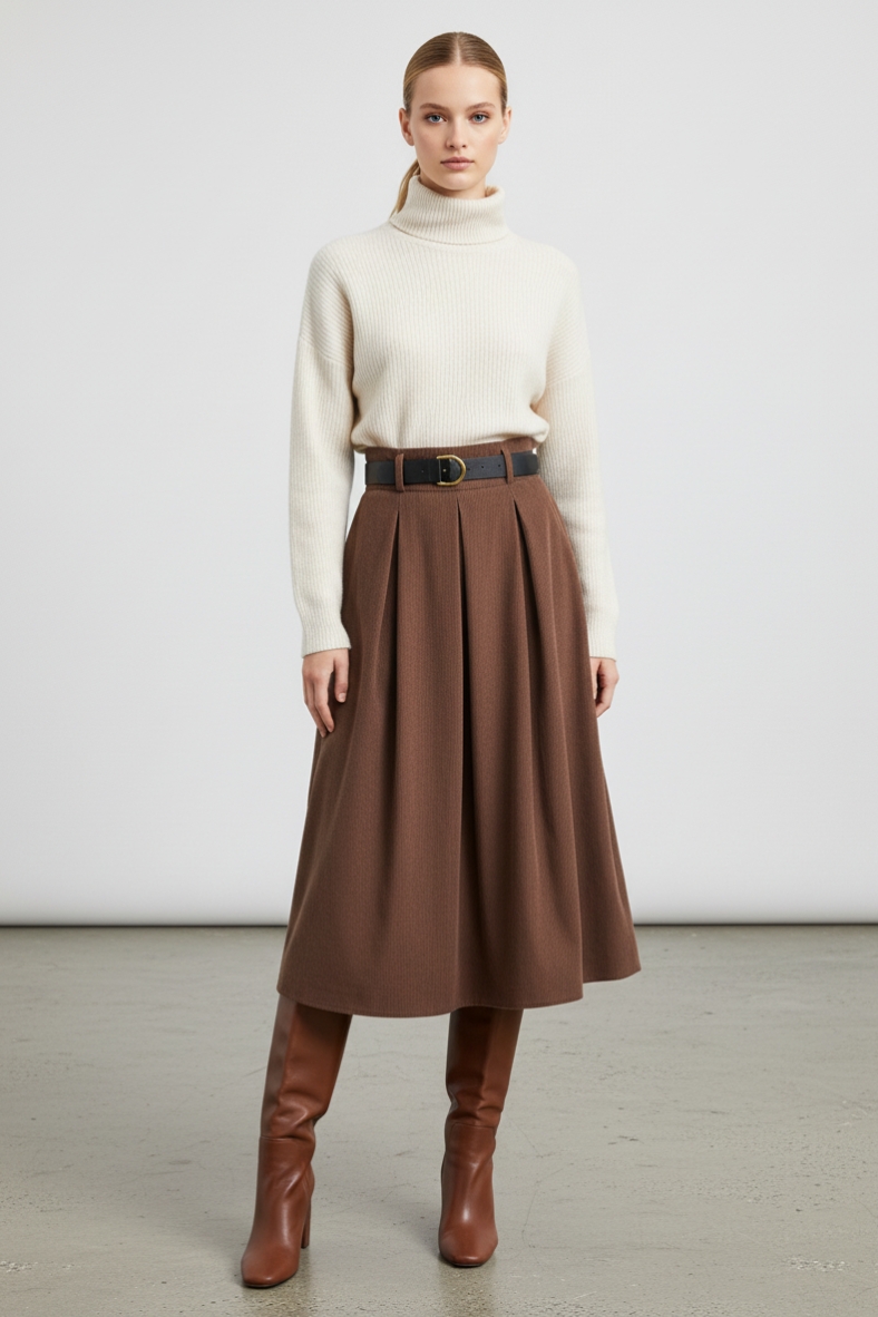 Aggiungi un tocco di eleganza al tuo outfit con la nostra gonna midi plissettata. Realizzata in un tessuto morbido e confortevole, è ideale per le giornate fresche.