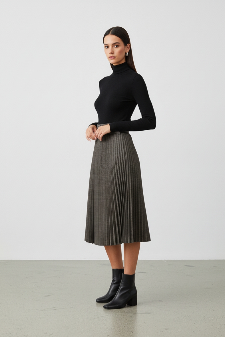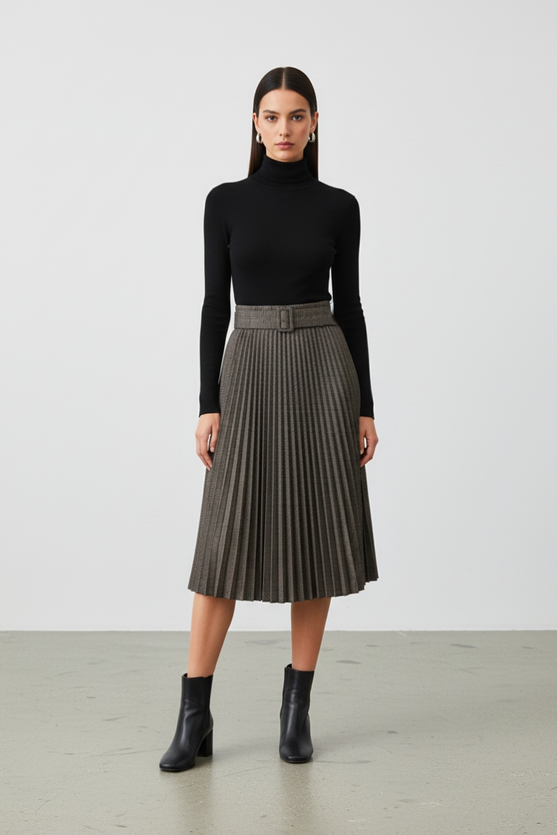 Questa gonna è perfetta per le giornate autunnali, grazie alla sua lunghezza midi che la rende adatta a qualsiasi tipo di clima. Sia che tu stia andando in ufficio o a un brunch con le amiche, la gonna plissettata con cintura sarà il tuo alleato di stile. Non perdere l’occasione di aggiungere questo pezzo versatile al tuo guardaroba!