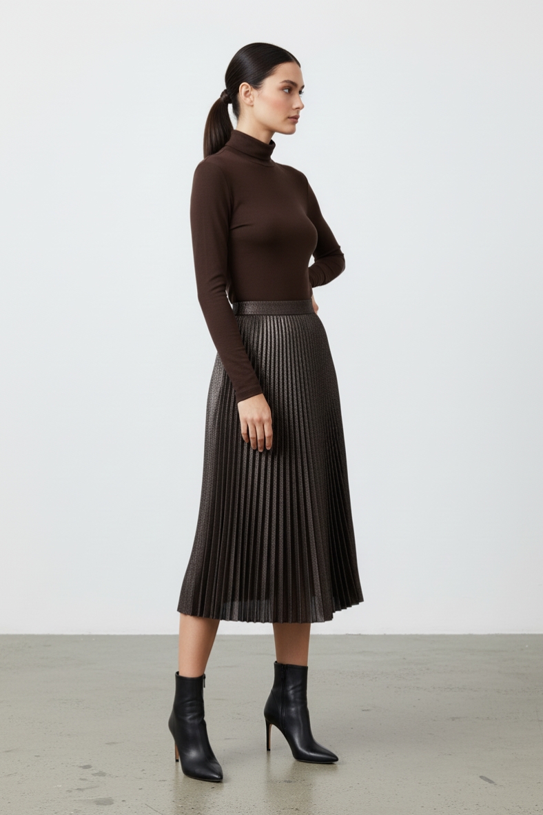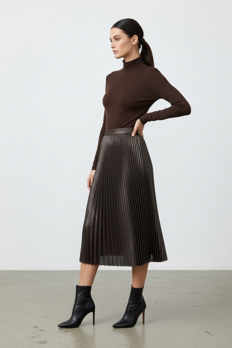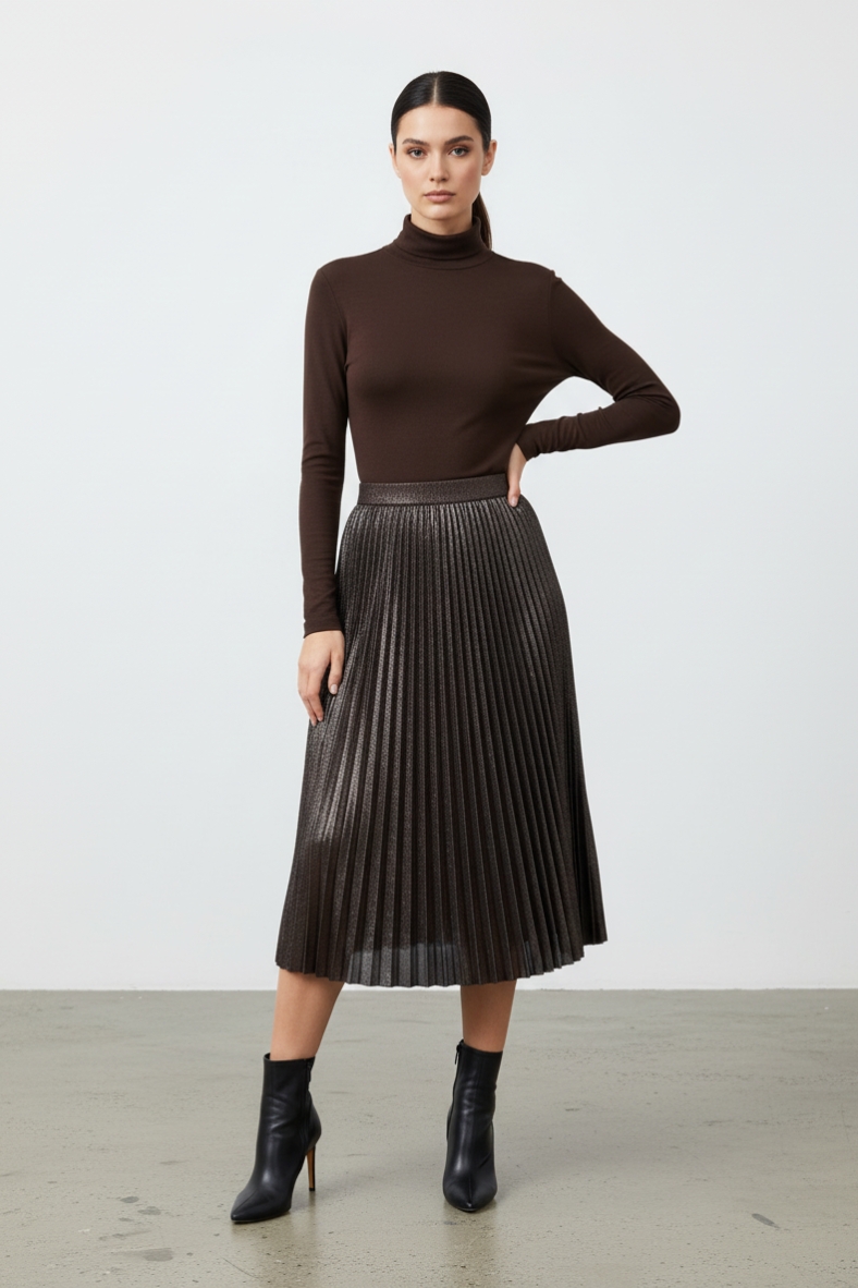 La gonna plissettata elegante è il capo ideale per chi desidera unire comfort e stile. Realizzata con un tessuto di alta qualità, questa gonna offre una vestibilità regolare che si adatta perfettamente alla silhouette femminile. Il suo design plissettato non solo aggiunge movimento, ma crea anche un effetto visivo affascinante, perfetto per ogni occasione. Puoi abbinarla facilmente a un maglione aderente per un look casual-chic, oppure optare per una camicia elegante per un outfit da ufficio impeccabile. Gli stivali alti completano perfettamente il look, donando un tocco di sofisticatezza. Non dimenticare di accessorizarla con una cintura in vita per esaltare ulteriormente la tua figura. La gonna è versatile e può essere indossata sia di giorno che di sera, rendendola un pezzo chiave del tuo guardaroba autunnale. Scegli di indossarla con un blazer per un look professionale o con una giacca di pelle per un tocco rock. Non lasciarti sfuggire l’opportunità di aggiungere questa gonna plissettata elegante al tuo armadio: è il perfetto equilibrio tra moda e funzionalità.