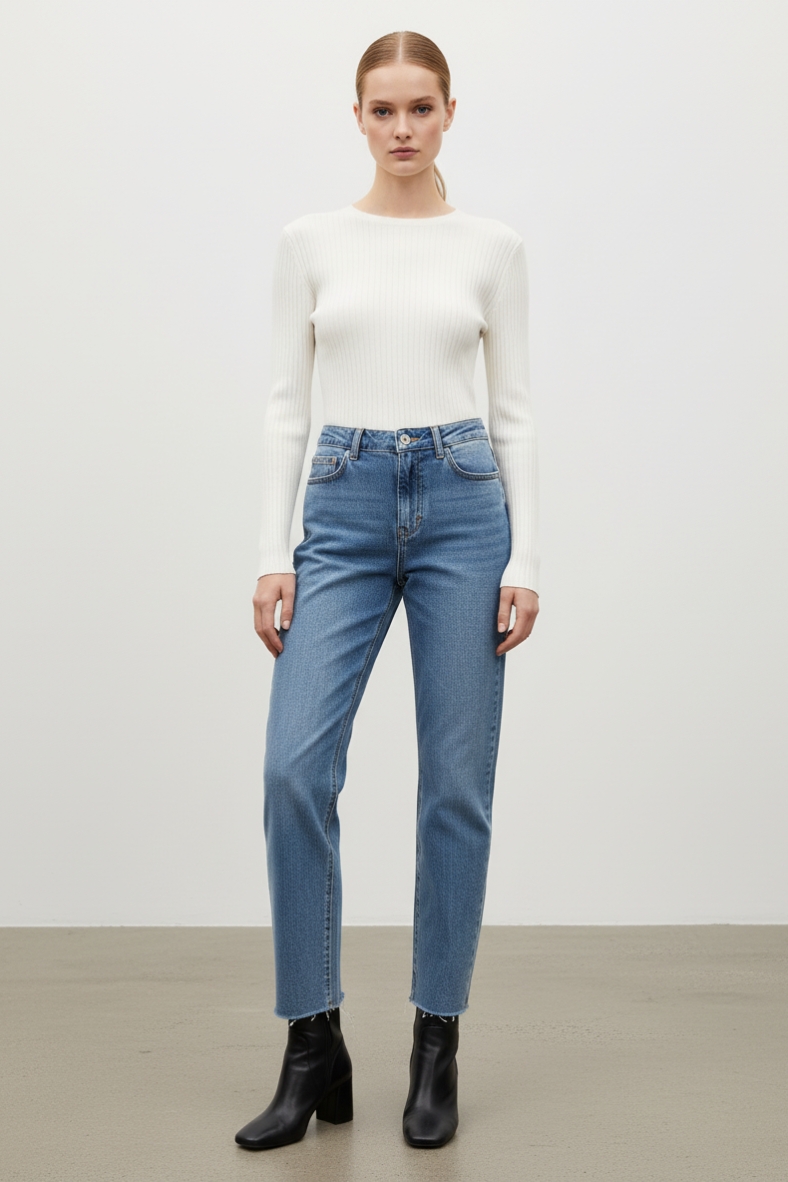 I jeans mom fit con orlo sfrangiato sono un must-have nel guardaroba di ogni donna moderna. Realizzati in una comoda miscela di cotone, offrono una vestibilità perfetta e un look sofisticato. Ideali per ogni occasione, dal lavoro al tempo libero.