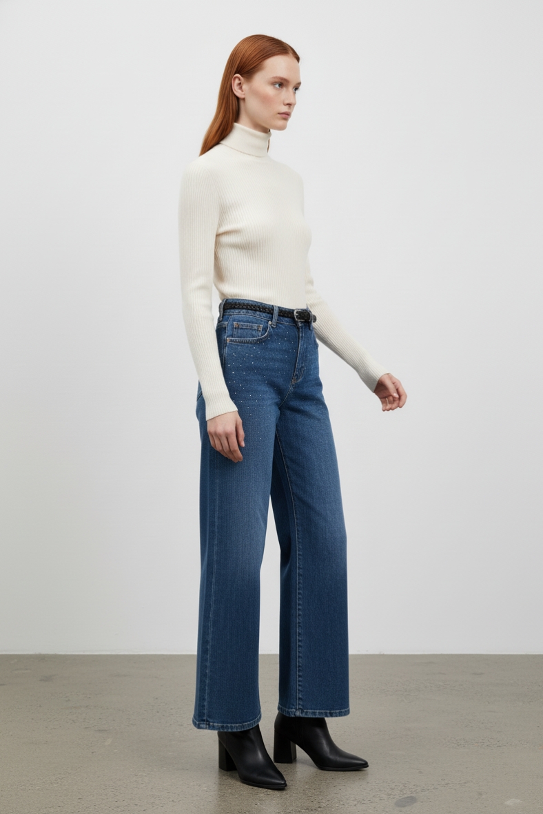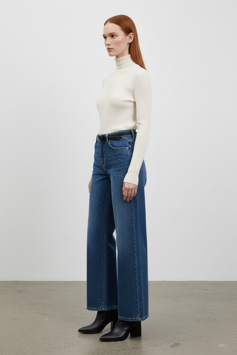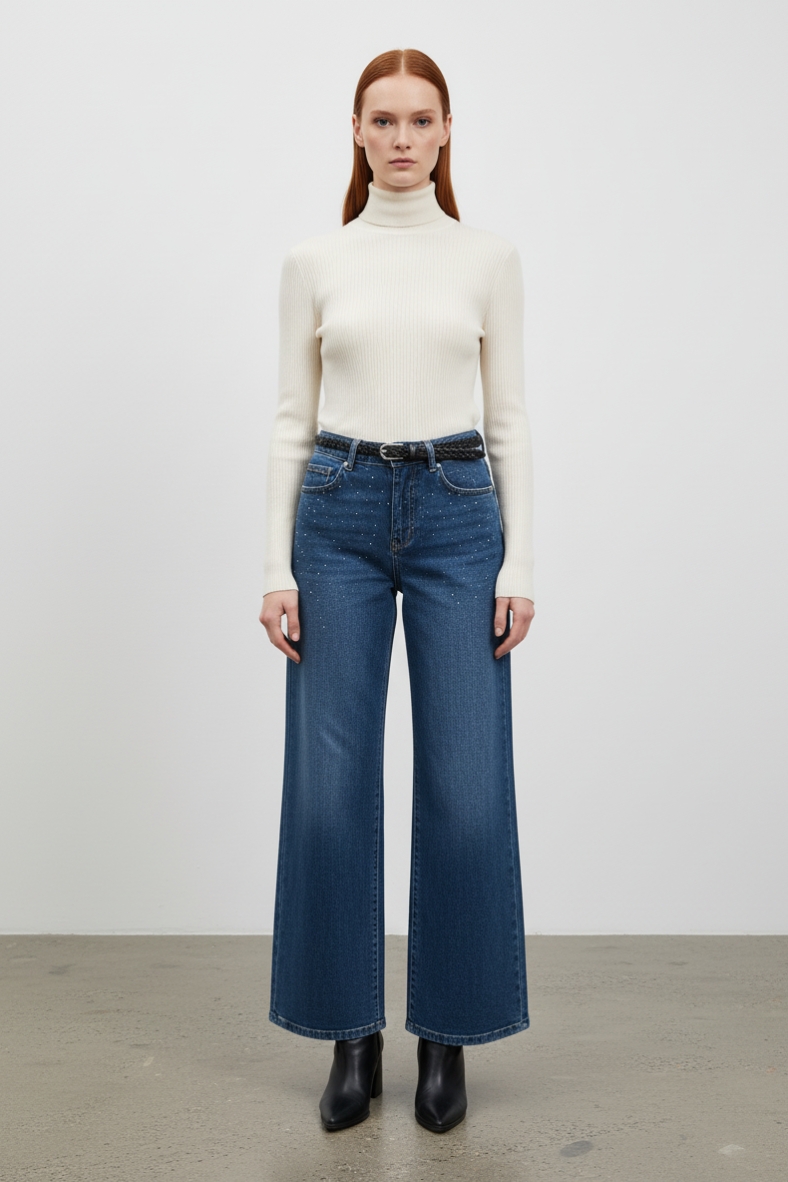 I jeans wide leg con strass sono un must-have nel tuo guardaroba. Realizzati in una comoda miscela di cotone, offrono una vestibilità perfetta e un look sofisticato. Ideali per ogni occasione, questi jeans si abbinano facilmente a qualsiasi outfit.
