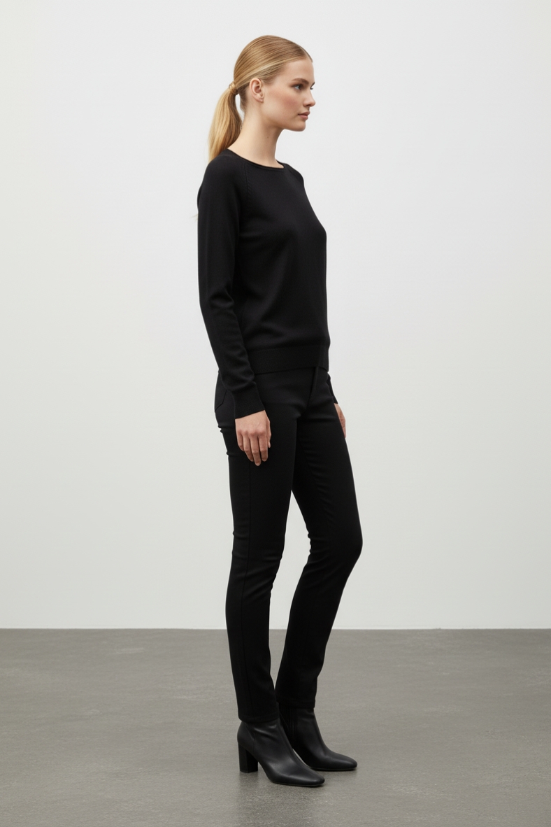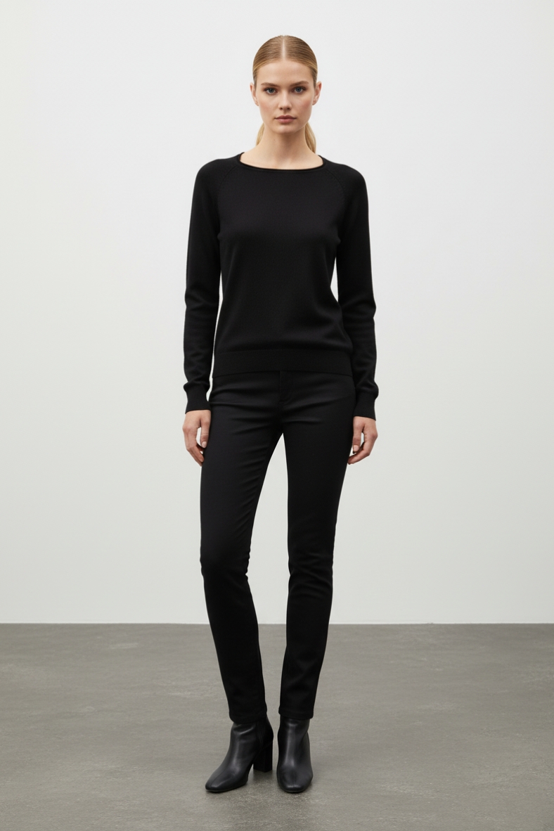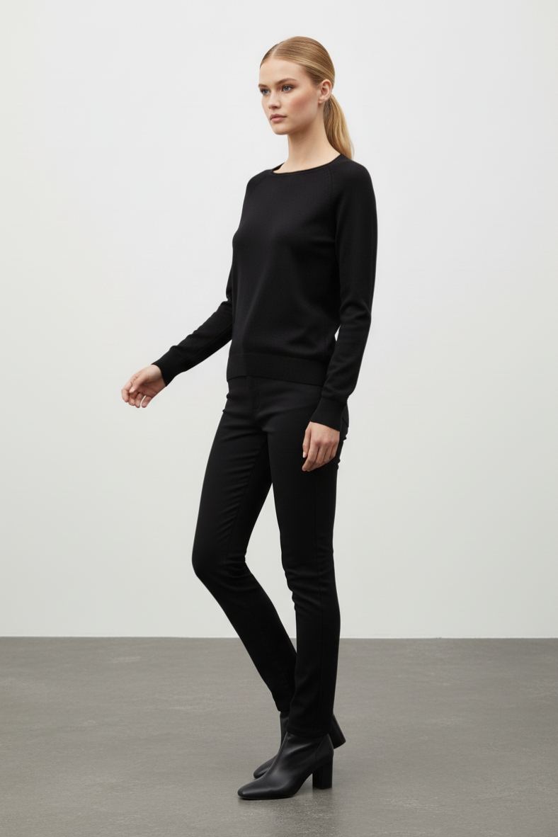 La maglia nera con scollo ampio è il capo ideale per chi cerca eleganza e versatilità. Realizzata in un morbido tessuto che avvolge delicatamente la silhouette, questa maglia è perfetta per creare look sofisticati senza rinunciare al comfort. Il suo design minimalista è arricchito da un ampio scollo che mette in risalto il collo, rendendola adatta sia per un outfit casual che per occasioni più formali.