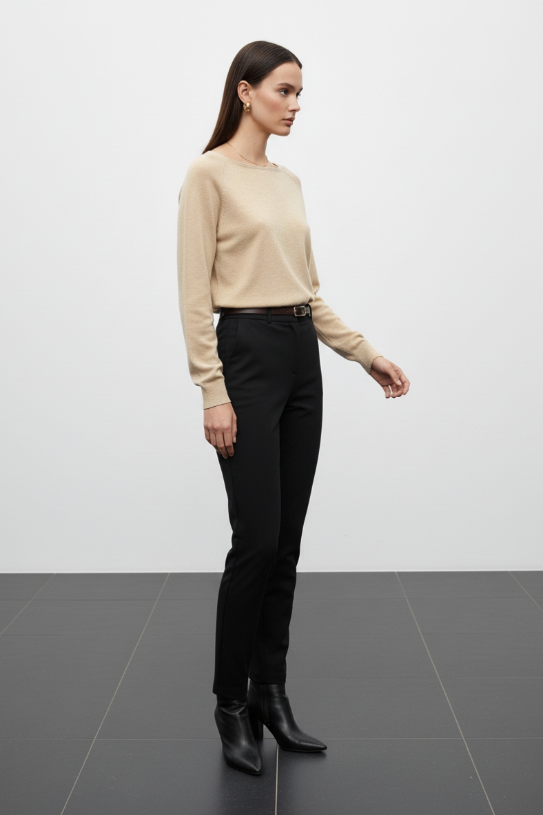 La maglia con scollo ampio è il capo ideale per chi cerca eleganza e versatilità. Realizzata in un morbido tessuto che avvolge delicatamente la silhouette, questa maglia è perfetta per creare look sofisticati senza rinunciare al comfort. Il suo design minimalista è arricchito da un ampio scollo che mette in risalto il collo, rendendola adatta sia per un outfit casual che per occasioni più formali. Abbinatela a un paio di jeans skinny per un look quotidiano chic, oppure a una gonna midi per un’uscita serale. Gli stivali alti completano perfettamente l’outfit, donando un tocco di classe. Per un look più audace, provate a sovrapporla a una giacca in pelle e a un paio di pantaloni in ecopelle. La maglia è caratterizzata da maniche lunghe che garantiscono calore nelle fresche giornate autunnali, mentre il suo taglio regolare la rende adatta a diverse corporature. La tonalità nera è un vero passe-partout, facile da abbinare con qualsiasi colore e accessorio. Non dimenticate di aggiungere una sciarpa colorata o una collana statement per dare un tocco personale al vostro look. Con questa maglia, ogni outfit diventa un’opera d’arte, perfetta per esprimere il vostro stile unico. Non lasciatevela scappare: è il momento di arricchire il vostro guardaroba con un capo che unisce comfort, eleganza e tendenze attuali.