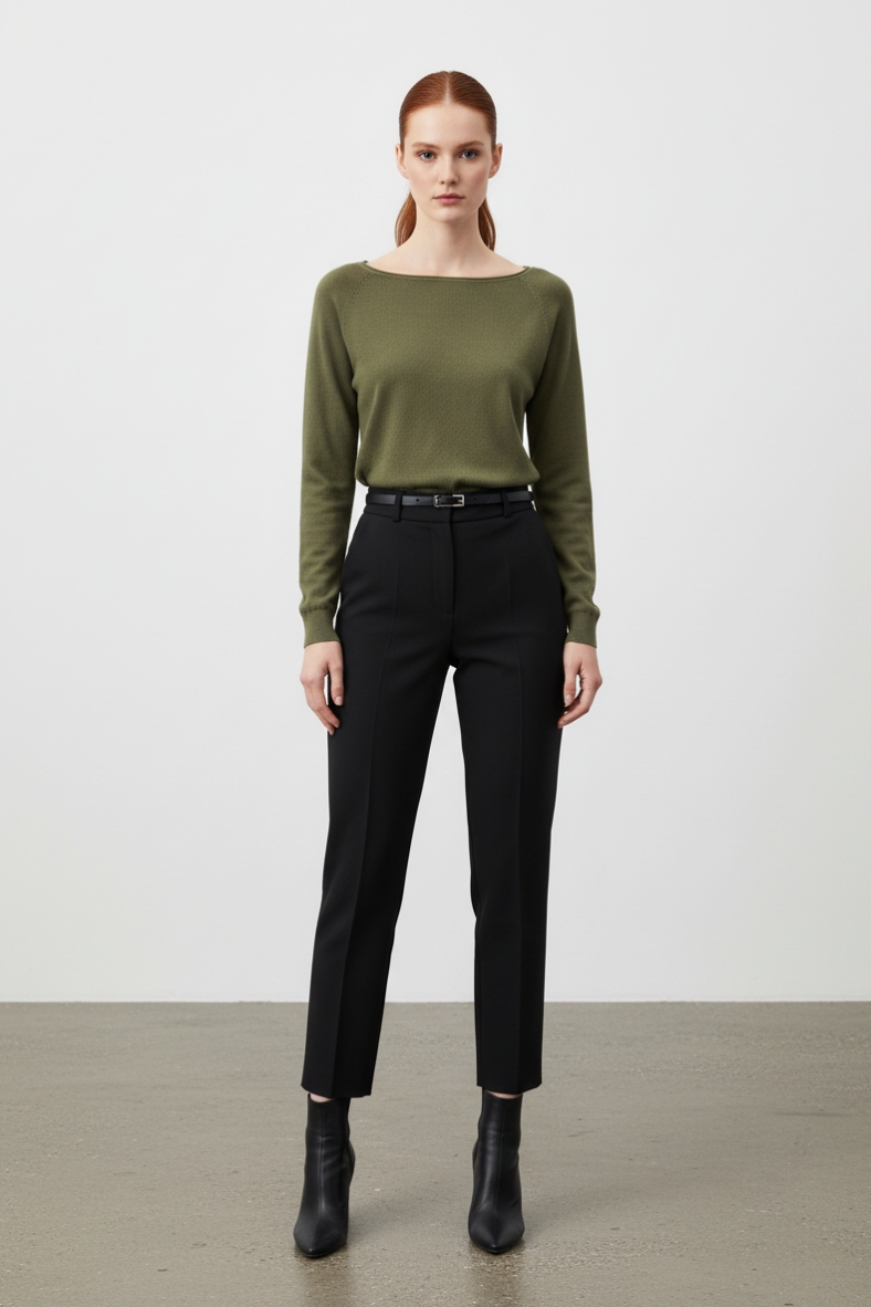 La maglia con scollo ampio è il capo ideale per chi cerca eleganza e versatilità. Realizzata in un morbido tessuto che avvolge delicatamente la silhouette, questa maglia è perfetta per creare look sofisticati senza rinunciare al comfort. Il suo design minimalista è arricchito da un ampio scollo che mette in risalto il collo, rendendola adatta sia per un outfit casual che per occasioni più formali. Abbinatela a un paio di jeans skinny per un look quotidiano chic, oppure a una gonna midi per un’uscita serale. Gli stivali alti completano perfettamente l’outfit, donando un tocco di classe. Per un look più audace, provate a sovrapporla a una giacca in pelle e a un paio di pantaloni in ecopelle. La maglia è caratterizzata da maniche lunghe che garantiscono calore nelle fresche giornate autunnali, mentre il suo taglio regolare la rende adatta a diverse corporature. La tonalità nera è un vero passe-partout, facile da abbinare con qualsiasi colore e accessorio. Non dimenticate di aggiungere una sciarpa colorata o una collana statement per dare un tocco personale al vostro look. Con questa maglia, ogni outfit diventa un’opera d’arte, perfetta per esprimere il vostro stile unico. Non lasciatevela scappare: è il momento di arricchire il vostro guardaroba con un capo che unisce comfort, eleganza e tendenze attuali.