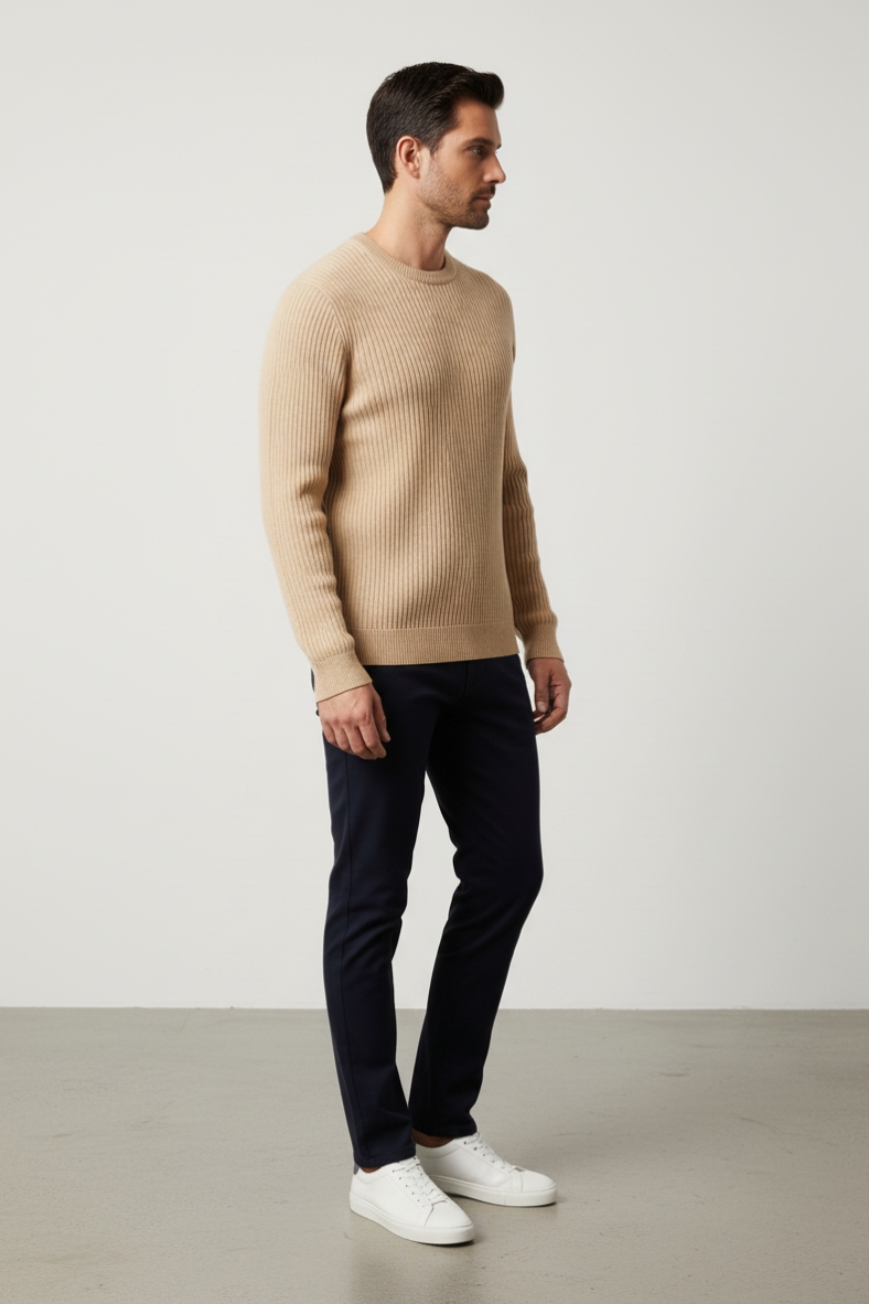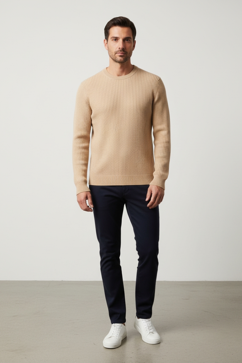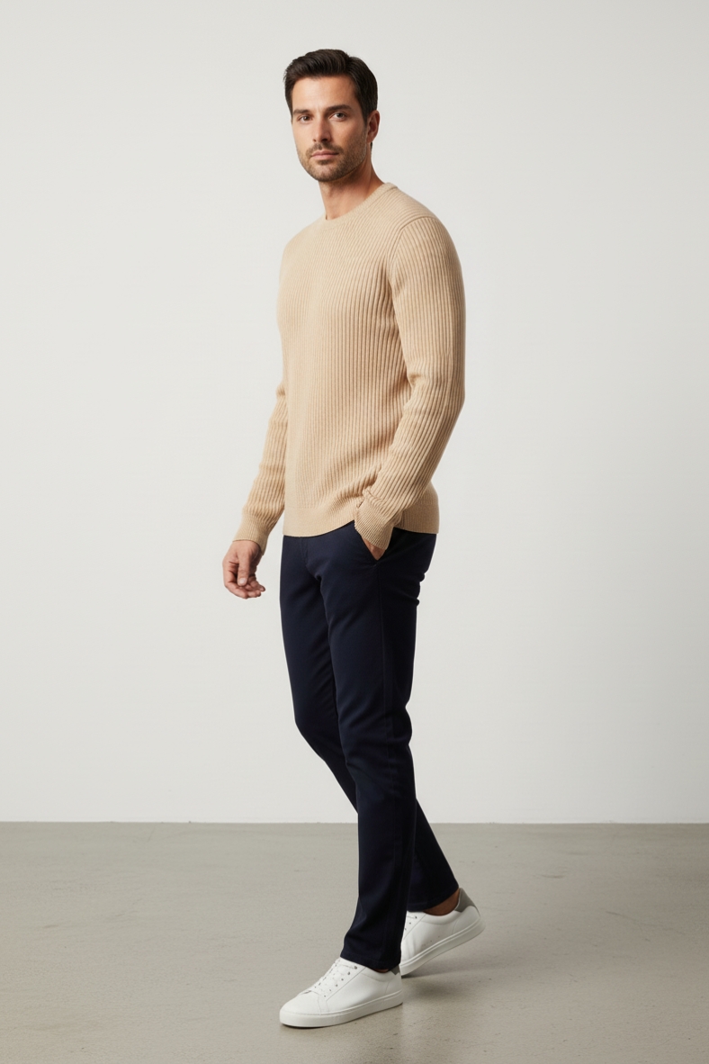 La maglia in lana con righe è un must-have per il guardaroba maschile. Realizzata con una miscela di lana e acrilico, questa maglia offre un comfort eccezionale e una sensazione di calore avvolgente. Il suo design a coste non solo aggiunge un tocco di stile, ma garantisce anche una vestibilità perfetta, valorizzando la silhouette maschile. Indossala con un paio di pantaloni chinos per un look casual-chic, oppure abbinala a jeans scuri per un outfit più informale. La tonalità neutra della maglia la rende estremamente versatile, permettendoti di abbinarla facilmente a giacche e cappotti. Completa il tuo look con un paio di sneakers bianche per un tocco di freschezza o con stivali in pelle per un’aria più sofisticata. Non dimenticare di aggiungere un accessorio come una sciarpa in cashmere per un tocco di eleganza. Con questa maglia, sarai sempre al passo con le tendenze senza rinunciare al comfort.