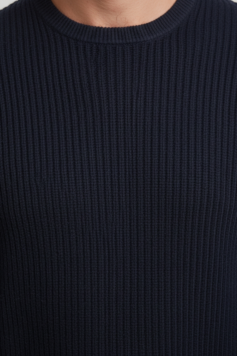 Questa maglia può essere facilmente abbinata a un paio di pantaloni chinos per un look casual-chic, oppure a jeans scuri per un’uscita serale. Per un tocco di eleganza in più, prova a indossarla sotto un blazer in tessuto, creando un contrasto di texture che non passerà inosservato. I dettagli costruttivi, come il collo rotondo e le maniche lunghe, la rendono un capo pratico e alla moda, perfetto per essere indossato in diverse situazioni.