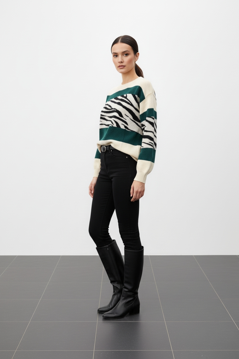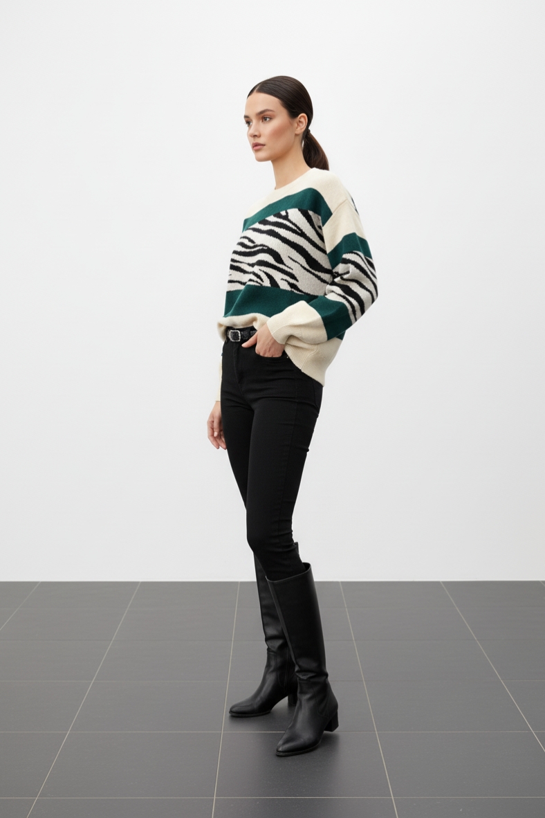 Questa maglia è estremamente versatile e può essere facilmente abbinata a diversi look. Per un’uscita casual, indossala con un paio di jeans skinny neri e stivali alti, per un effetto chic e moderno. Se desideri un look più elegante, prova ad abbinarla a una gonna midi in pelle e stivaletti con tacco.