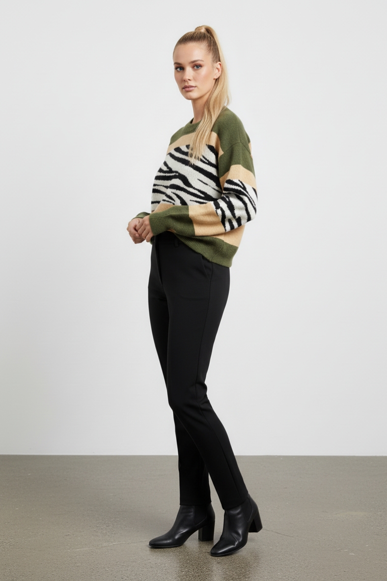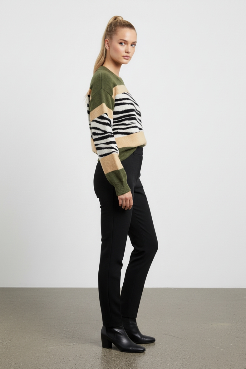 Questa maglia è estremamente versatile e può essere facilmente abbinata a diversi look. Per un’uscita casual, indossala con un paio di jeans skinny neri e stivali alti, per un effetto chic e moderno. Se desideri un look più elegante, prova ad abbinarla a una gonna midi in pelle e stivaletti con tacco.
