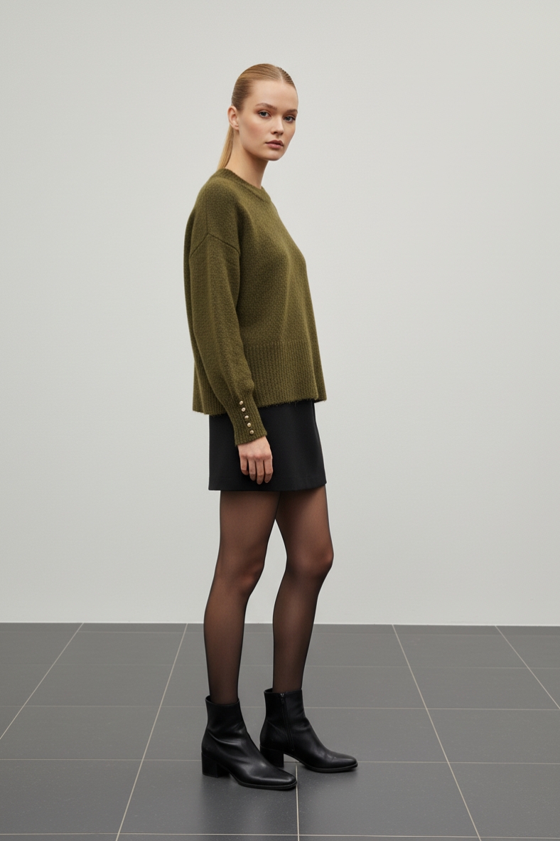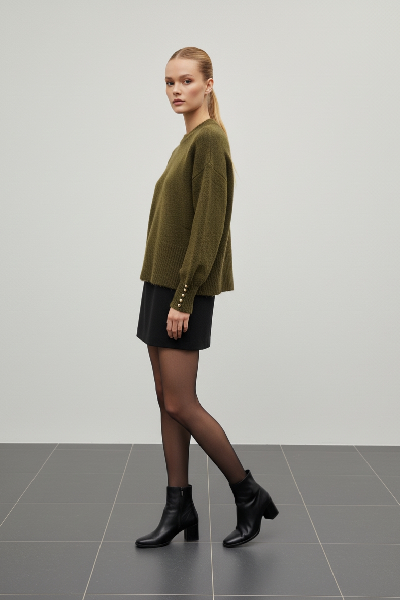 La maglia oversize con maniche a sbuffo e bottoni ai polsini è un must-have per il tuo guardaroba autunnale. Realizzata in un pregiato mix di lana e Tencel, questa maglia non solo offre un tocco di eleganza, ma anche una sensazione di morbidezza al tatto che la rende irresistibile. Il suo design ampio e le maniche a sbuffo donano un’aria di sofisticatezza, perfetta per essere indossata in diverse occasioni.