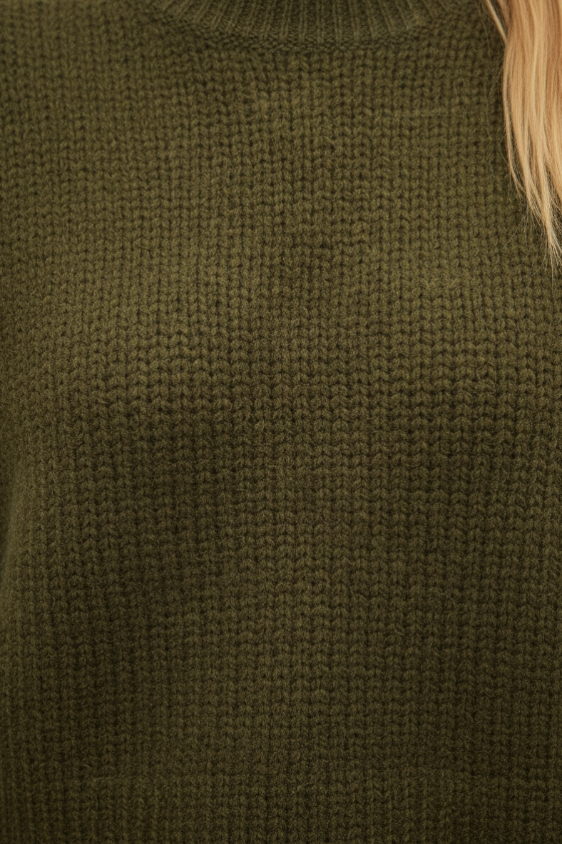 La maglia oversize con maniche a sbuffo e bottoni ai polsini è il capo ideale per un look casual e chic. Realizzata in un morbido mix di lana e Tencel, assicura comfort e calore durante le giornate più fresche.