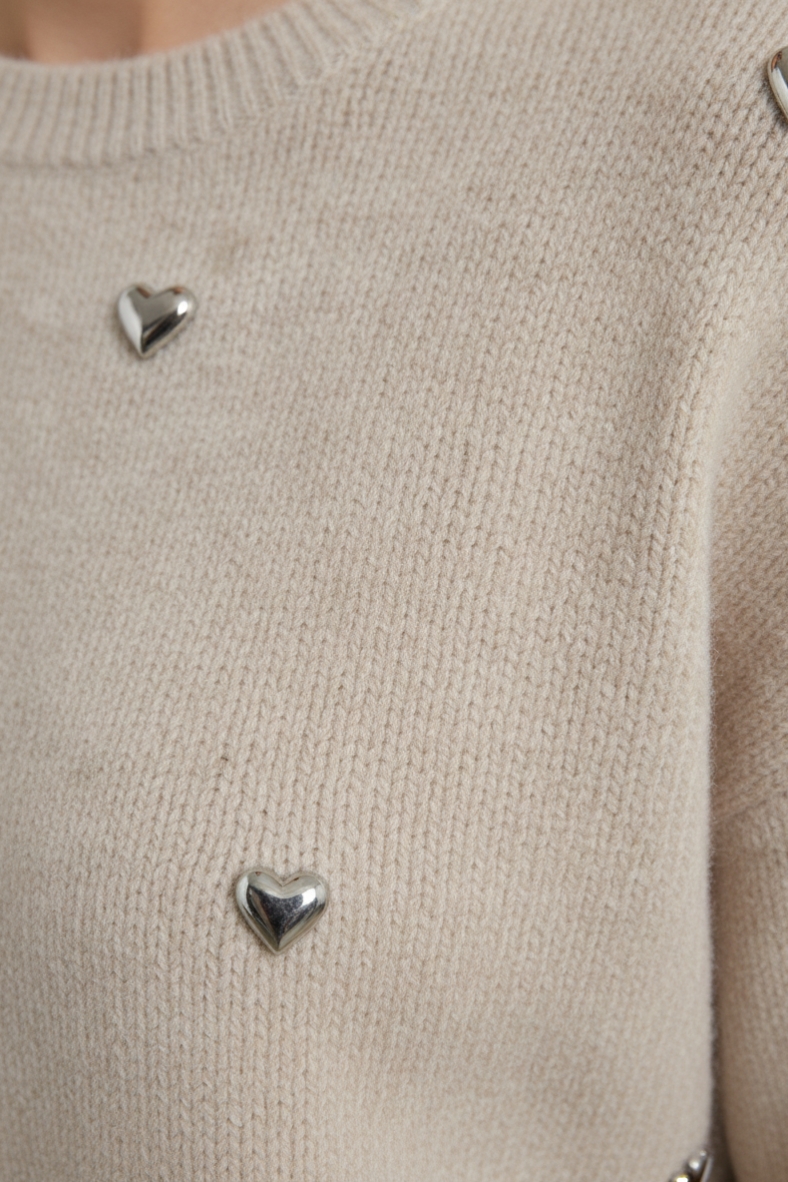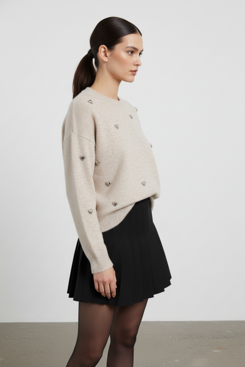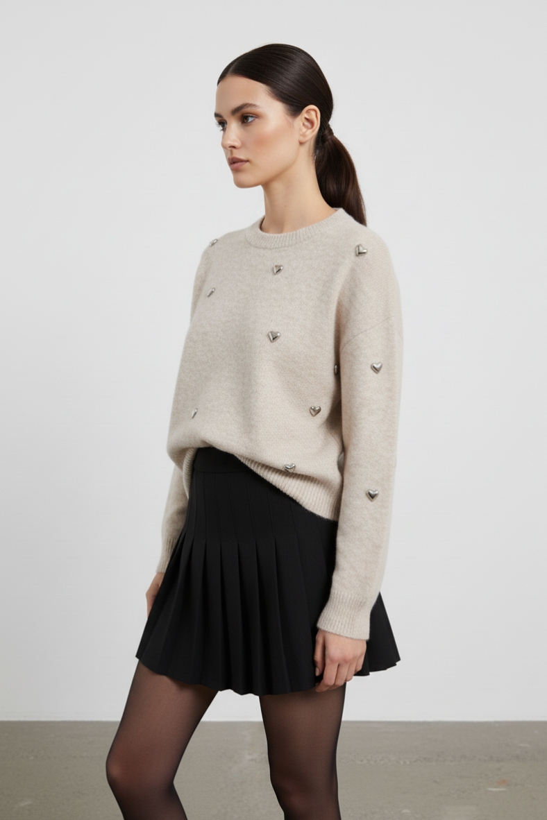 Questa maglia con cuori argento è un must-have per il tuo guardaroba invernale. Con dettagli scintillanti, offre comfort e stile in ogni occasione.