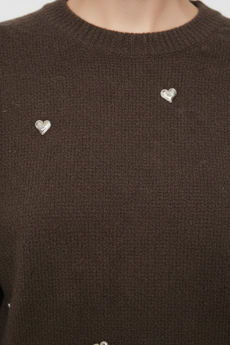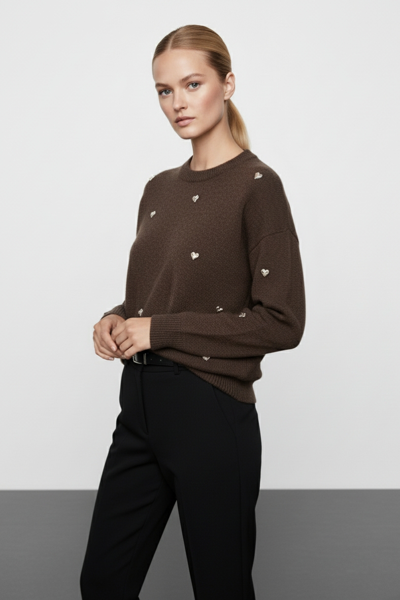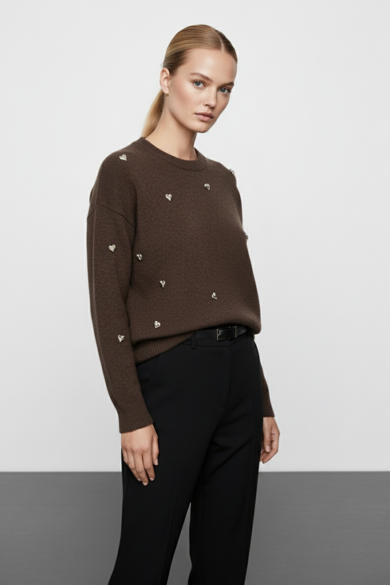 Questa maglia con cuori argento è un must-have per il tuo guardaroba invernale. Con dettagli scintillanti, offre comfort e stile in ogni occasione.