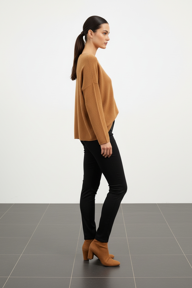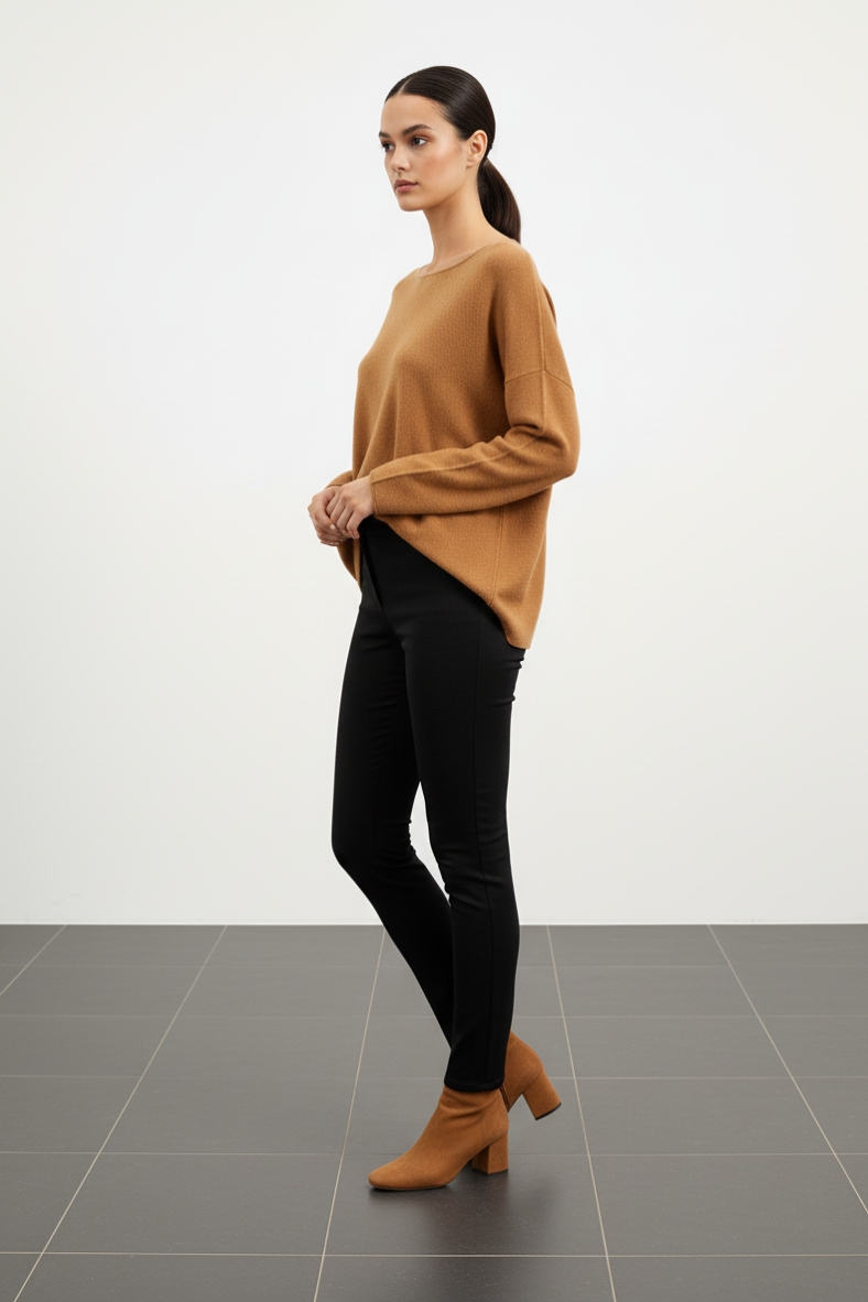 La maglia in morbida viscosa è il capo ideale per chi cerca un equilibrio tra comfort e stile. Realizzata in una morbida miscela di viscosa, questa maglia avvolge delicatamente il corpo, offrendo una sensazione di calore e morbidezza sulla pelle. Il suo design semplice ma elegante la rende perfetta per ogni occasione, dal brunch con le amiche a una serata informale. Puoi abbinarla facilmente a un paio di jeans skinny neri per un look casual-chic, oppure optare per un pantalone a palazzo per un outfit più sofisticato. Le scarpe con tacco, come stivaletti o décolleté, aggiungeranno un tocco di eleganza, mentre una giacca di pelle o un cappotto lungo completeranno il tuo look in modo impeccabile. I dettagli della maglia, come le maniche leggermente svasate e il collo ampio, conferiscono un’aria di raffinatezza, mentre la texture unica cattura la luce in modo affascinante. Non dimenticare di accessoriare con una sciarpa in cashmere o una borsa a tracolla per un tocco finale. Questa maglia in morbida viscosa è un vero e proprio passe-partout del guardaroba autunnale, capace di adattarsi a diverse situazioni e stili. Scegli di indossarla con un tocco di personalità e lasciati avvolgere dalla sua eleganza senza tempo.
