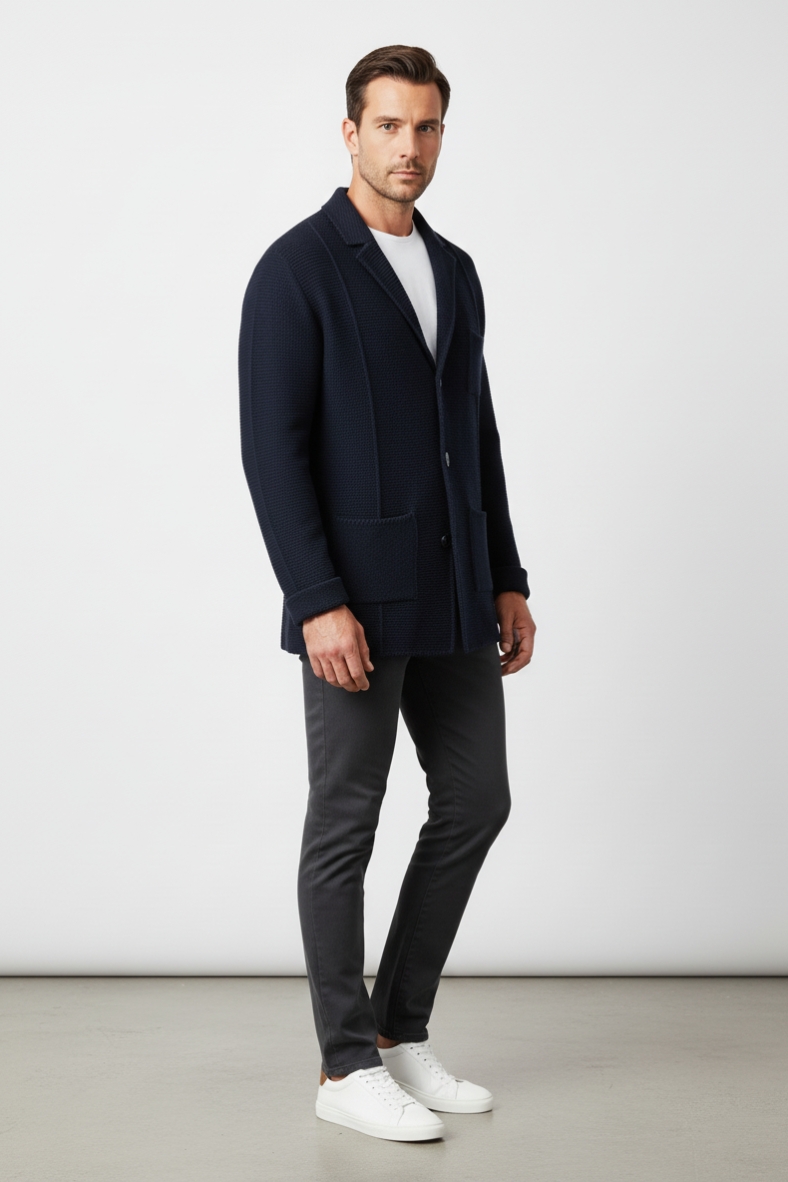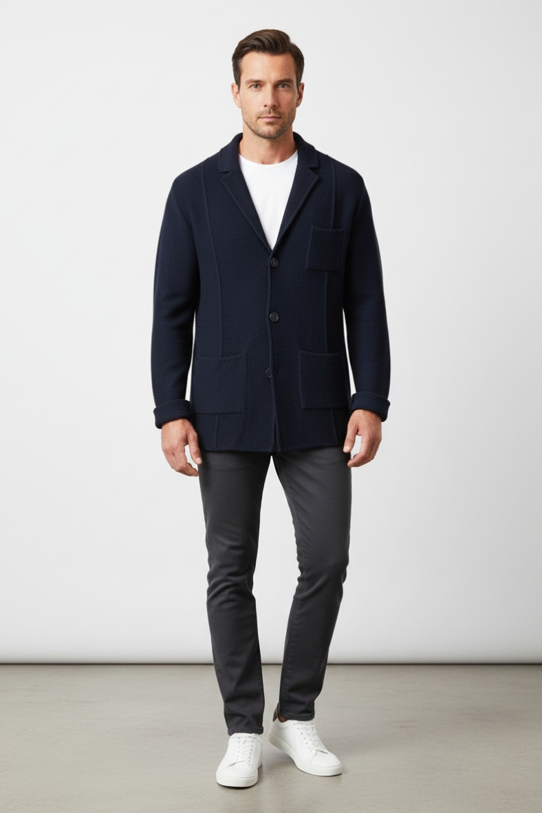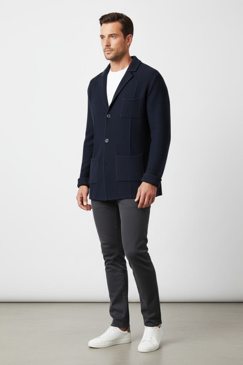 La maglia elegante con tasche è un must-have per il guardaroba maschile in questa stagione. Realizzata con una miscela di lana e acrilico, offre una sensazione di morbidezza al tatto, perfetta per avvolgerti in un caldo abbraccio durante le giornate più fredde. Il design raffinato, arricchito da tasche pratiche, la rende non solo stilosa ma anche funzionale. Puoi abbinarla facilmente a un paio di jeans slim fit per un look casual-chic, oppure indossarla sopra una camicia per un tocco di eleganza in più. I dettagli come il colletto a scialle e i bottoni frontali aggiungono un tocco di classe, rendendo questa maglia versatile per diverse occasioni, dal lavoro agli incontri informali. Non dimenticare di completare il tuo outfit con un paio di scarpe eleganti e un orologio minimalista per un look impeccabile. Scegli questa maglia per esprimere il tuo stile unico e rimanere caldo e alla moda durante l’autunno-inverno.