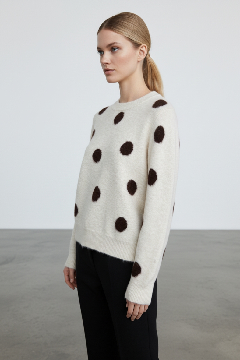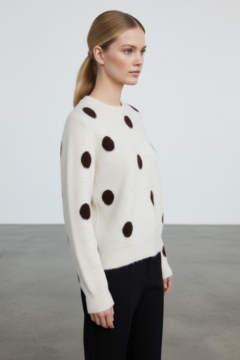 Questa maglia è perfetta anche per le serate invernali, da indossare sopra una gonna midi plissettata e stivali alti. La sua versatilità ti permetterà di creare look diversi, adatti a ogni occasione. Non perdere l’opportunità di aggiungere questo pezzo chic al tuo guardaroba: la maglia con pois è un investimento sicuro per chi ama la moda e il comfort.