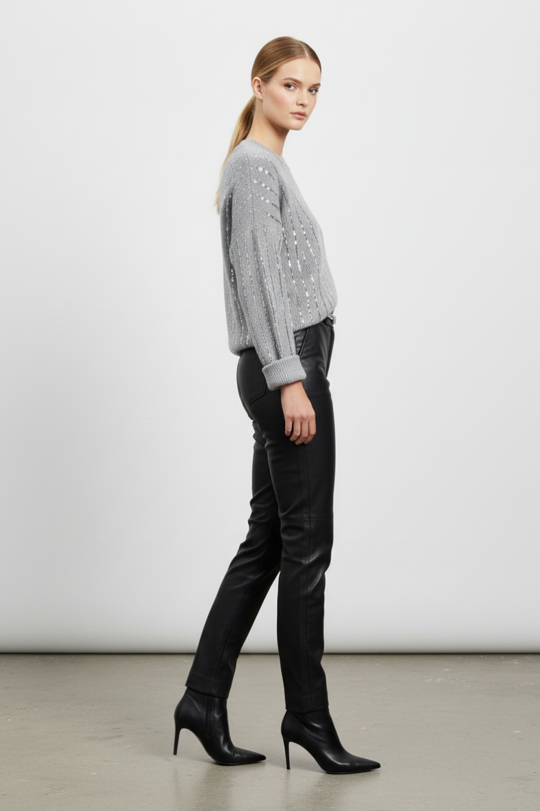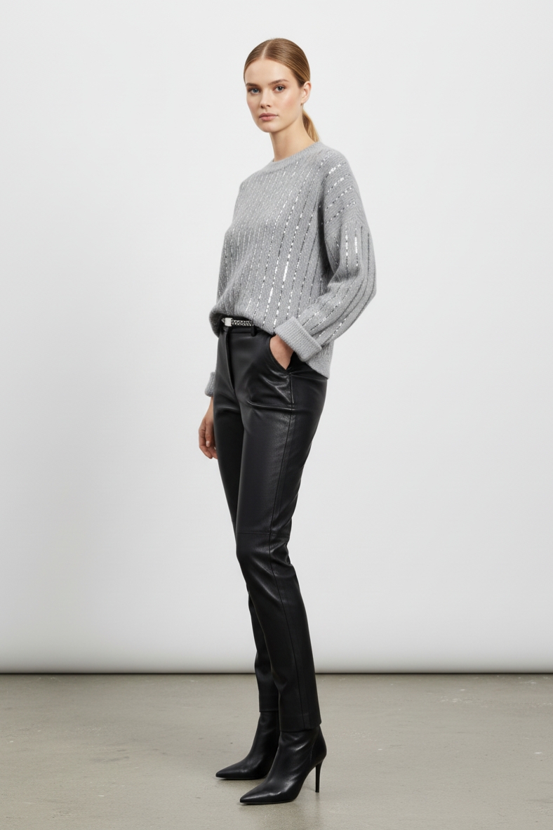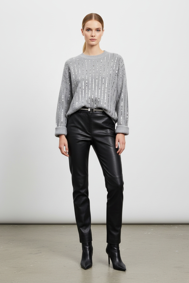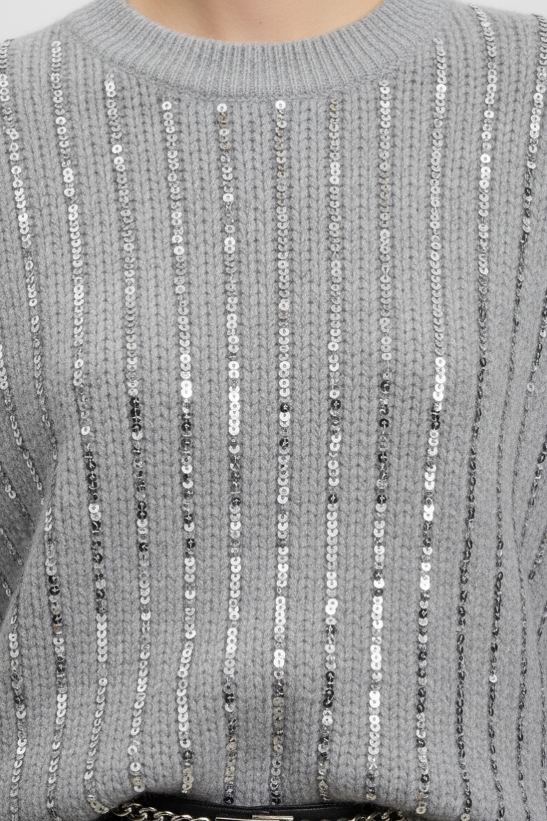 La maglia grigia con paillettes è un must-have per il tuo guardaroba autunnale. Realizzata con materiali di alta qualità, offre comfort e stile in ogni occasione.