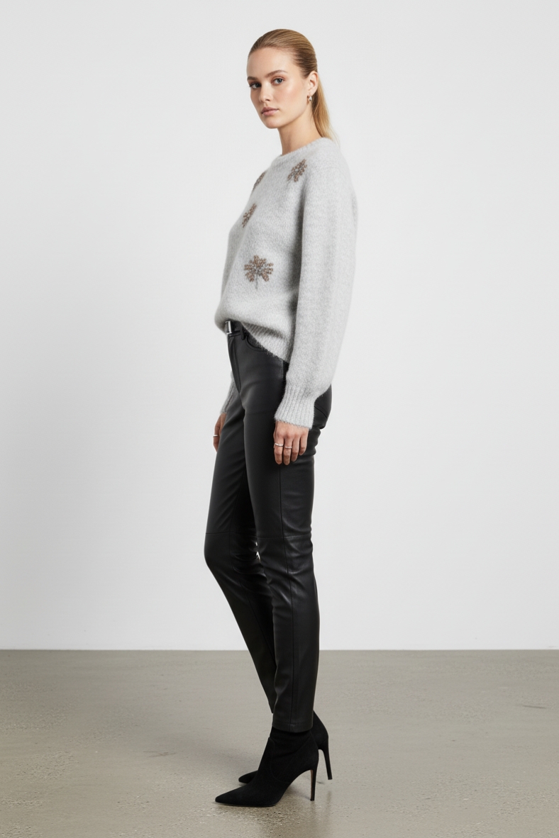 Per completare il tuo look, non dimenticare di aggiungere un paio di stivaletti con tacco e una borsa a tracolla in pelle. Questo outfit ti porterà dalla mattina alla sera, facendoti sentire sempre al top. Scegli la maglia con ricami floreali per esprimere il tuo stile unico e raffinato, senza rinunciare al comfort.