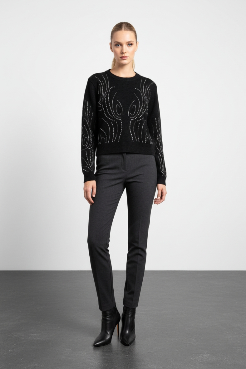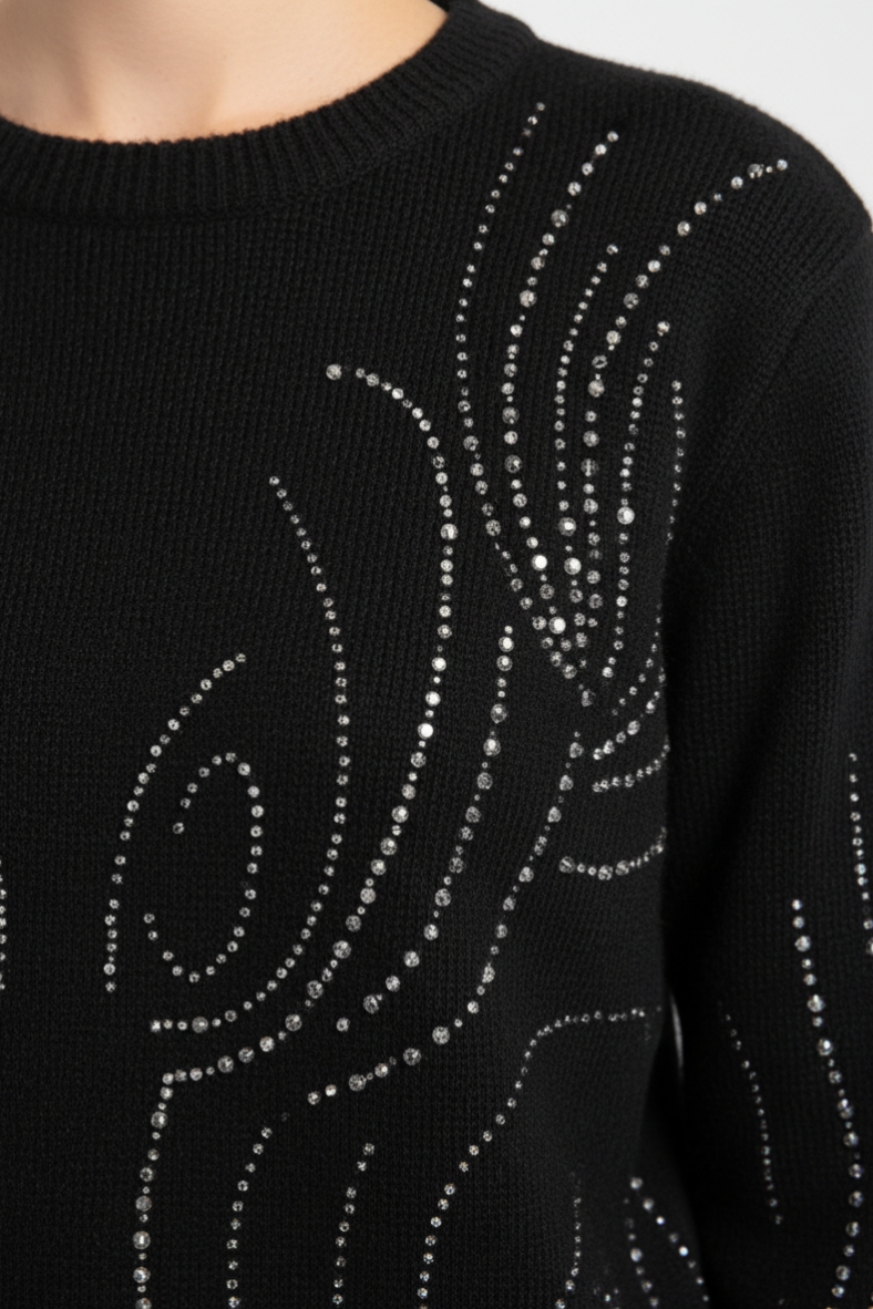 Questa maglia con brillantini è un must-have per il tuo guardaroba invernale. Con un design elegante e una vestibilità comoda, si adatta perfettamente a qualsiasi occasione.