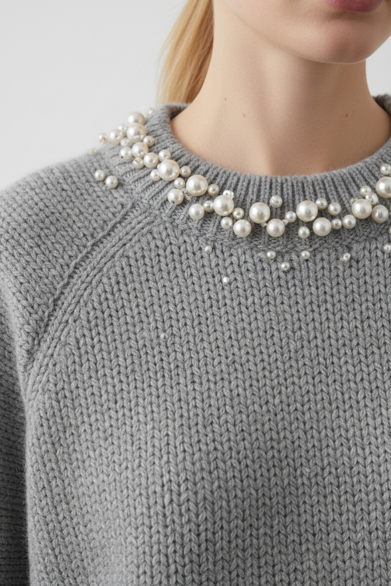 Questa maglia con perle è un must-have per il tuo guardaroba autunnale. Realizzata con una combinazione di materiali di alta qualità, offre comfort e stile in ogni occasione.