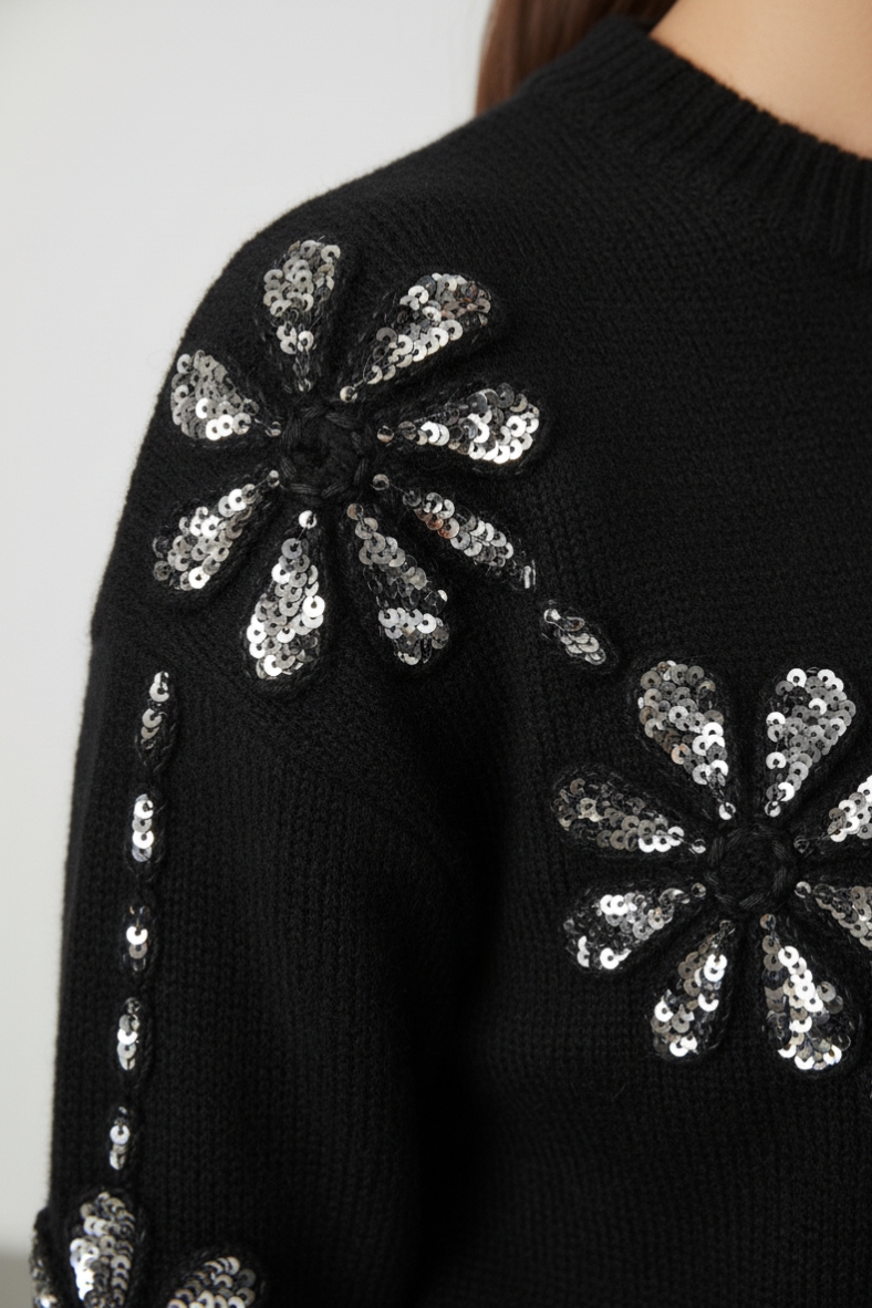 La maglia con ricami floreali è un must-have per il tuo guardaroba autunnale. Realizzata con una miscela di lana e poliammide, offre calore e comfort senza rinunciare allo stile.