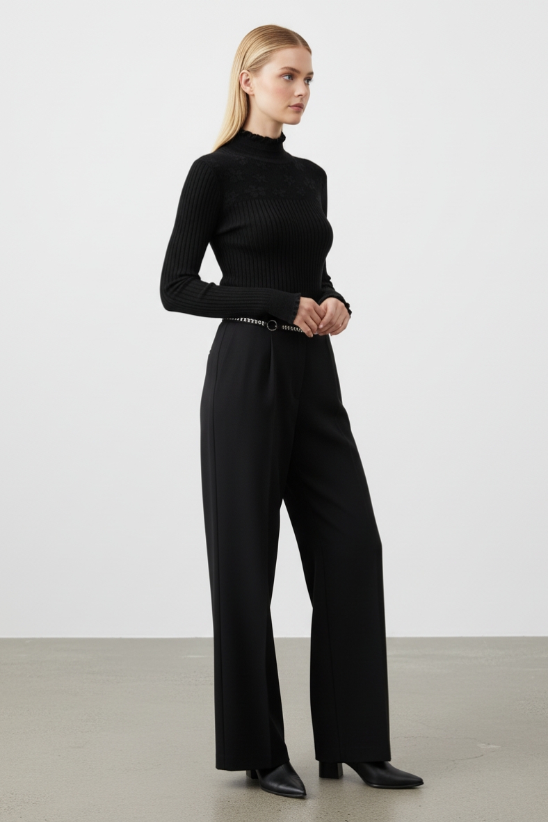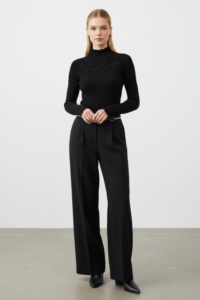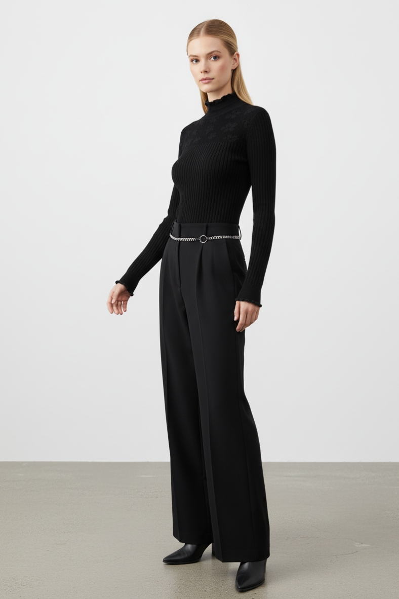 Inoltre, la cura dei dettagli, come le maniche lunghe e il collo alto, aggiunge un tocco di femminilità e raffinatezza. Non perdere l’occasione di arricchire il tuo guardaroba con questa maglia a coste, perfetta per ogni occasione e stagione.