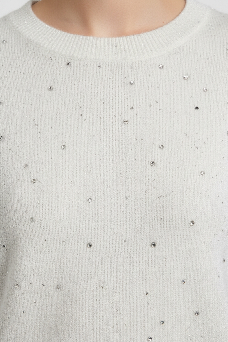 Questa maglia elegante con strass è un must-have per il tuo guardaroba autunnale. Realizzata in morbida viscosa, presenta dettagli scintillanti che la rendono unica e raffinata.