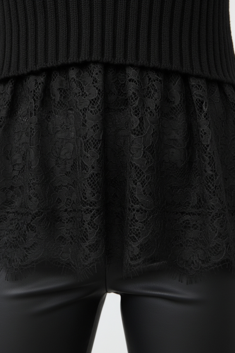 Questa maglia è ideale anche per le serate più fresche, da indossare sopra un top a maniche lunghe per un ulteriore strato di calore. La sua versatilità la rende un must-have nel tuo guardaroba autunnale, capace di adattarsi a diverse occasioni, dal lavoro al tempo libero. Scegli la maglia nera con pizzo per un look che non passa mai di moda.