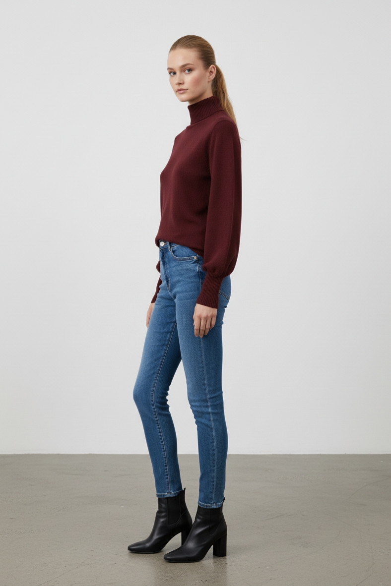 Puoi abbinarla a un paio di pantaloni slim fit per un outfit da ufficio impeccabile, oppure a una gonna midi per un look più romantico. Gli stivali alti in pelle completeranno il tuo look, aggiungendo un tocco di sofisticatezza. La tonalità calda della maglia si sposa perfettamente con colori neutri come il grigio e il beige, rendendola un pezzo versatile da mixare con altri capi del tuo guardaroba.