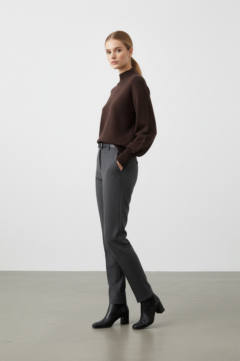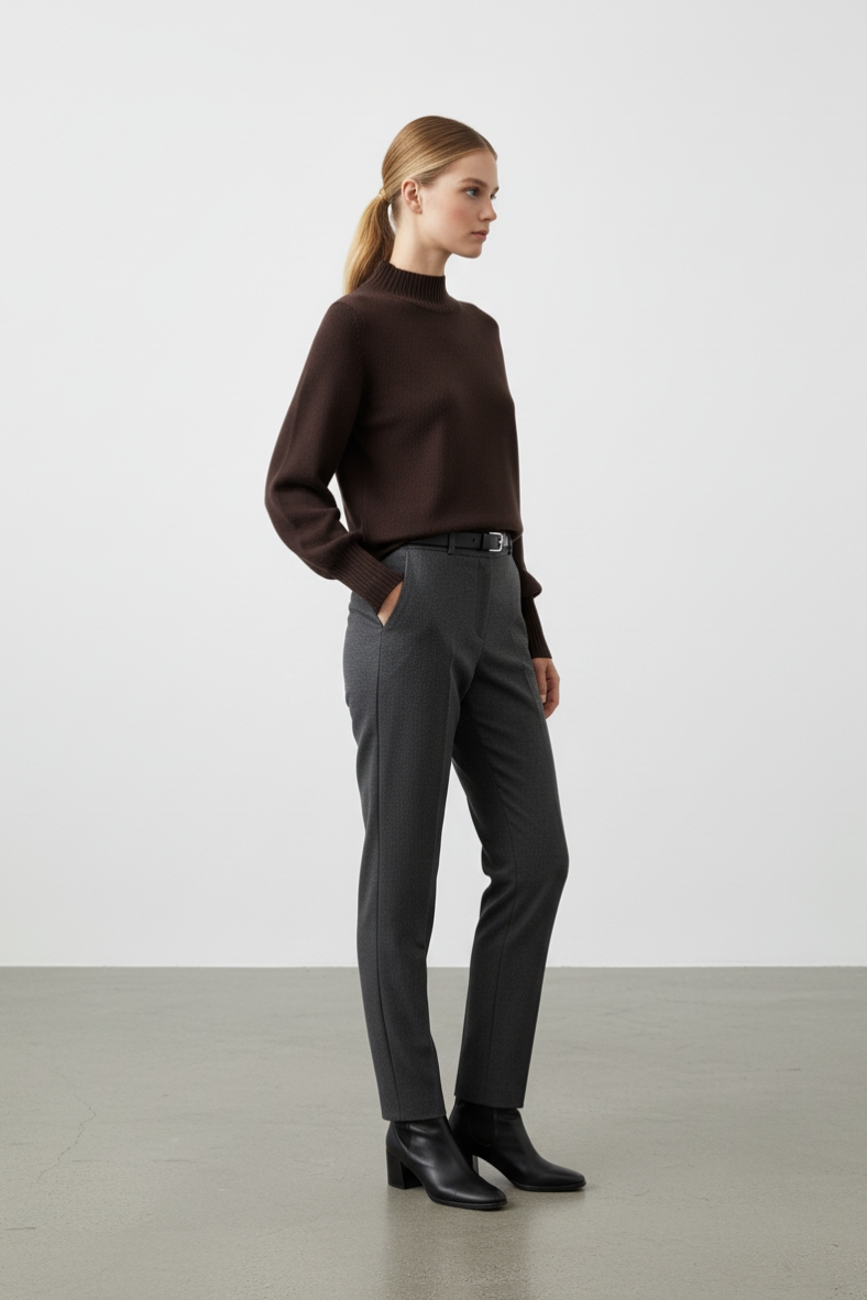 Puoi abbinarla a un paio di pantaloni slim fit per un outfit da ufficio impeccabile, oppure a una gonna midi per un look più romantico. Gli stivali alti in pelle completeranno il tuo look, aggiungendo un tocco di sofisticatezza. La tonalità calda della maglia si sposa perfettamente con colori neutri come il grigio e il beige, rendendola un pezzo versatile da mixare con altri capi del tuo guardaroba.