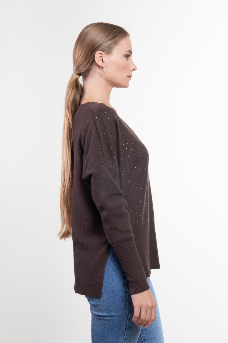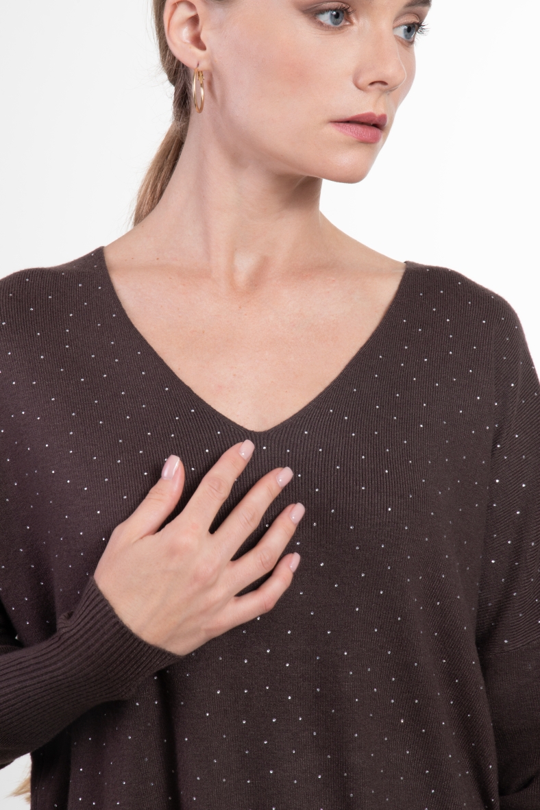 Aggiungi un tocco di eleganza al tuo guardaroba con la nostra maglia in viscosa arricchita da brillantini. Questo capo versatile è ideale per ogni occasione, dal lavoro al tempo libero. La sua vestibilità ampia e il scollo a V offrono comfort e stile, rendendola un must-have per la stagione.