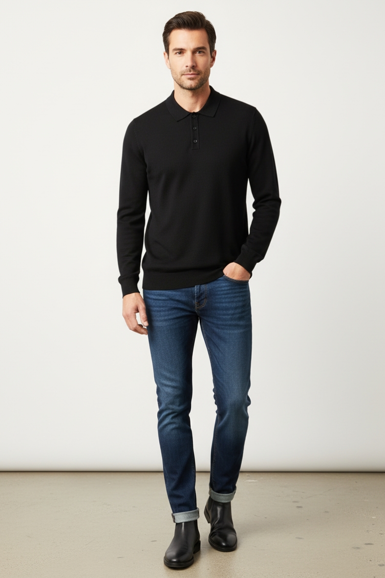 Dettagli come i bottoni sul colletto e le maniche a costine conferiscono carattere al capo, mentre la vestibilità regolare assicura una silhouette slanciata. Non dimenticare di completare il tuo outfit con un orologio elegante e una cintura in pelle per un tocco finale di classe. Questa maglia è perfetta per chi desidera esprimere il proprio stile senza rinunciare al comfort.