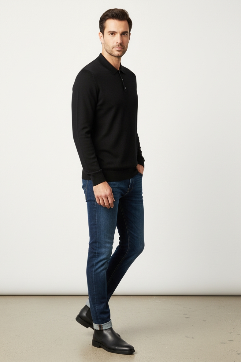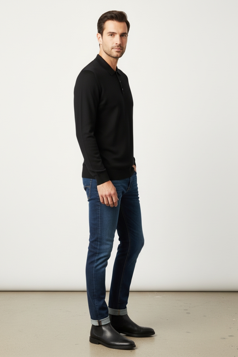 La maglia con colletto elegante è un capo versatile che non può mancare nel guardaroba di ogni uomo attento alla moda. Realizzata in morbida viscosa, questa maglia offre una sensazione di comfort e leggerezza, rendendola ideale per le fresche giornate autunnali e invernali. Il colletto a polo aggiunge un tocco di raffinatezza, permettendo di indossarla sia in contesti casual che più formali.