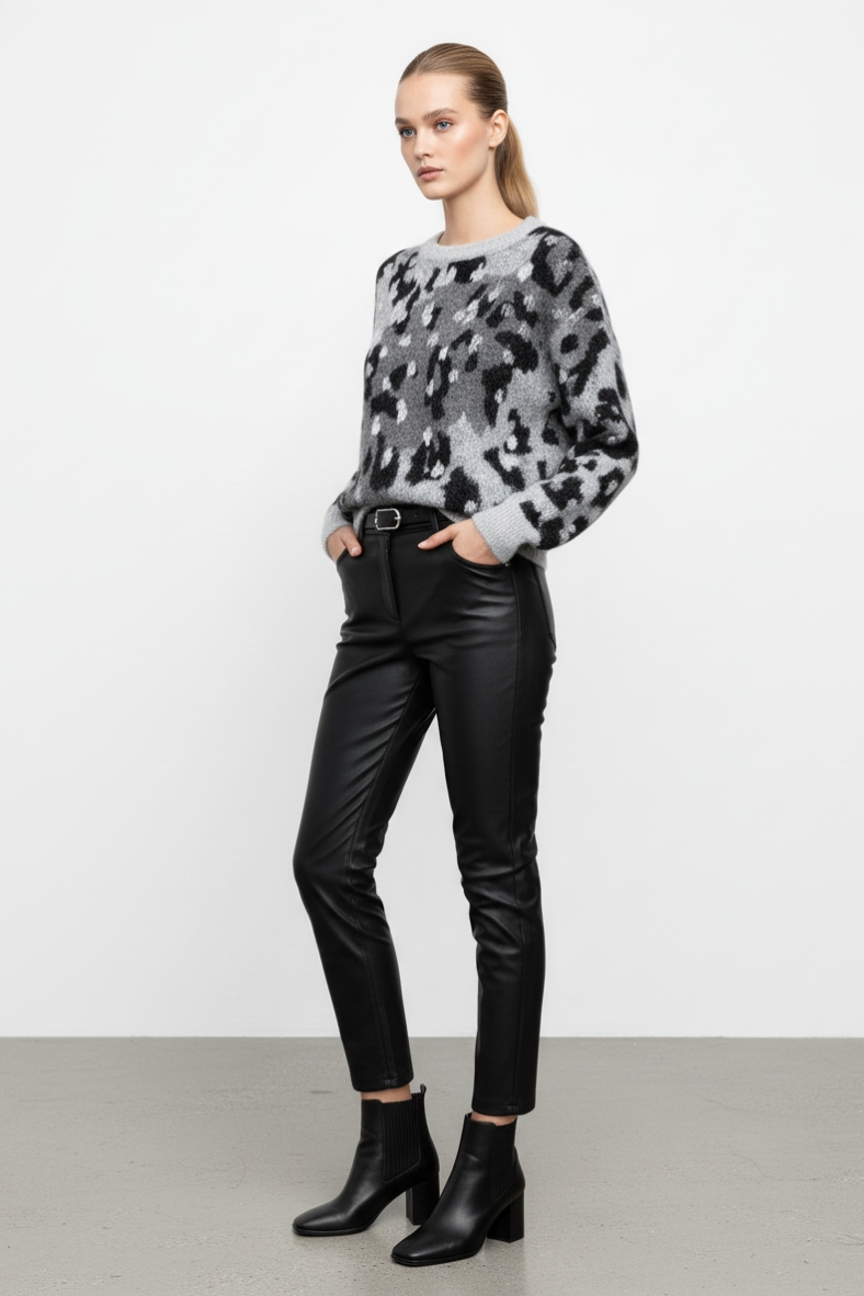Questa maglia oversize con fantasia animalier è un must-have per il tuo guardaroba autunnale. Realizzata con materiali di alta qualità, offre comfort e stile in ogni occasione.
