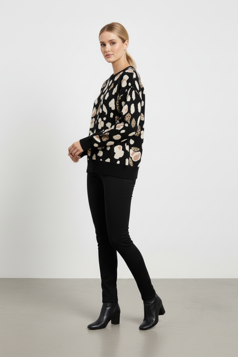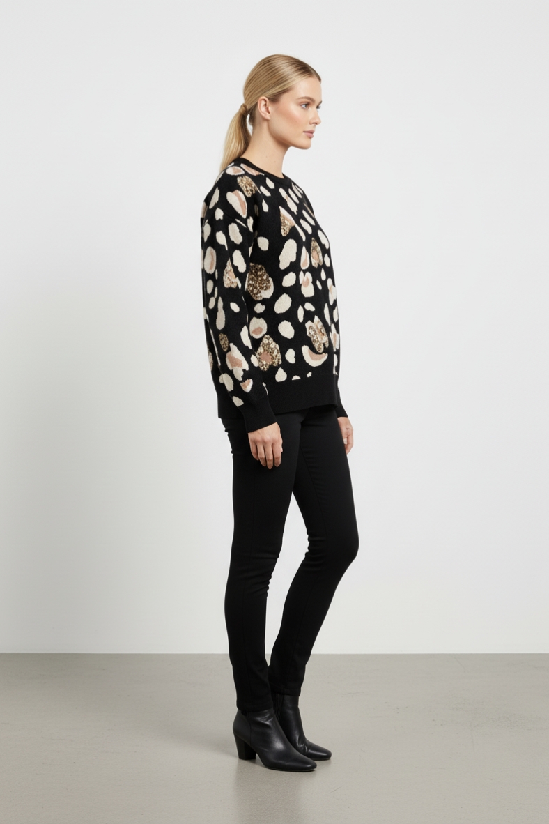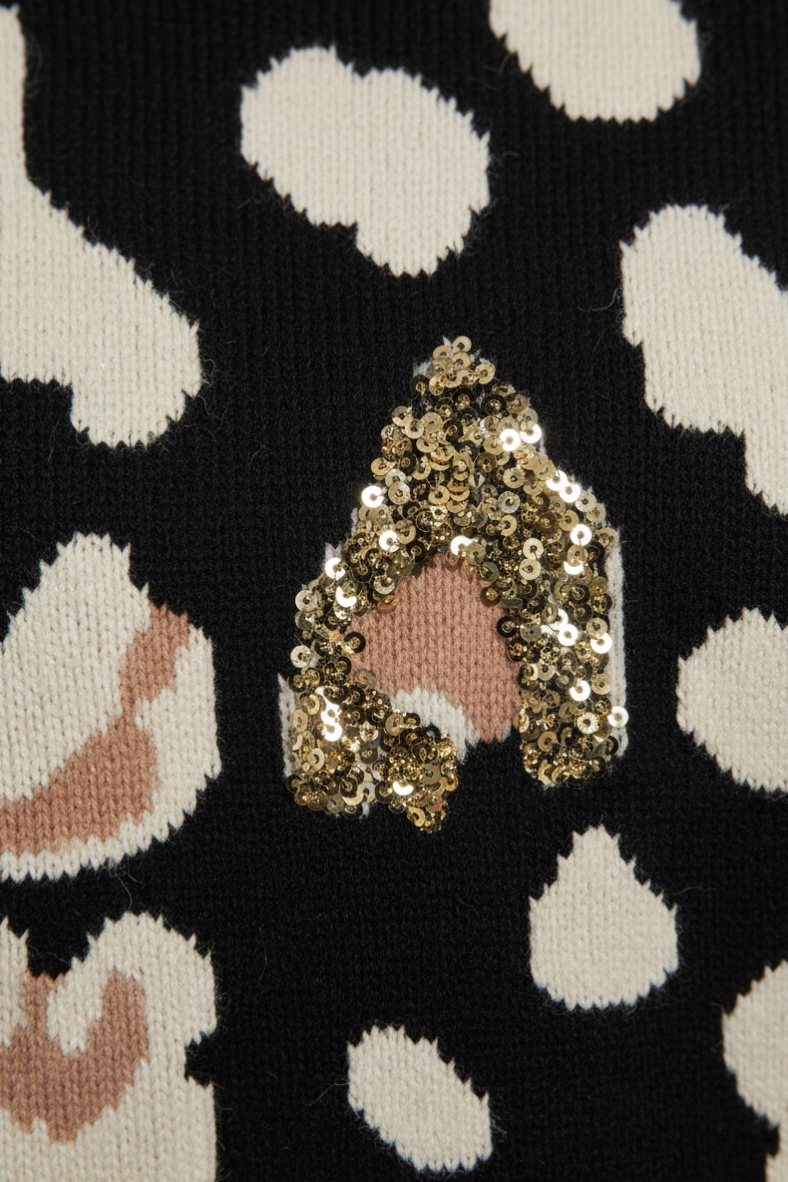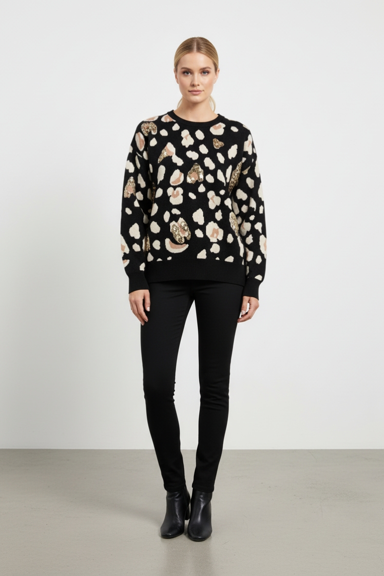 Questa maglia leopardata con dettagli paillettes è un must-have per chi ama osare con stile. Realizzata in morbida viscosa e lana, è perfetta per un look elegante e contemporaneo.
