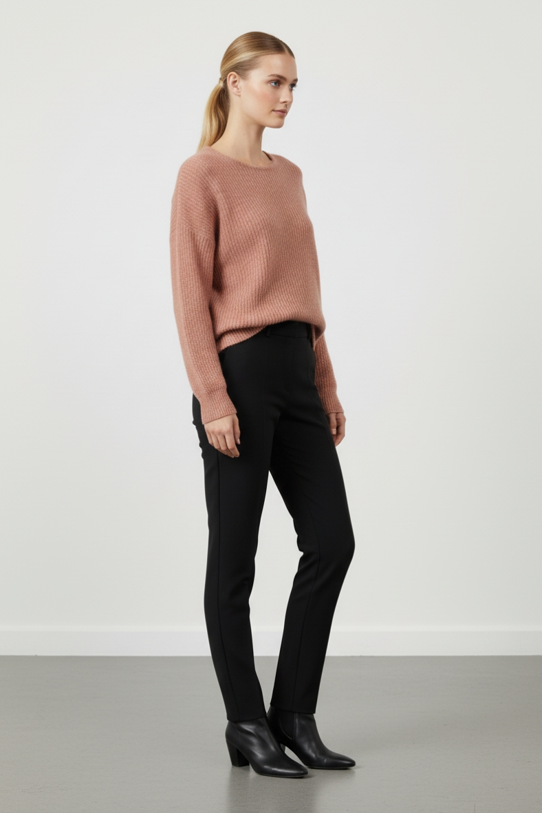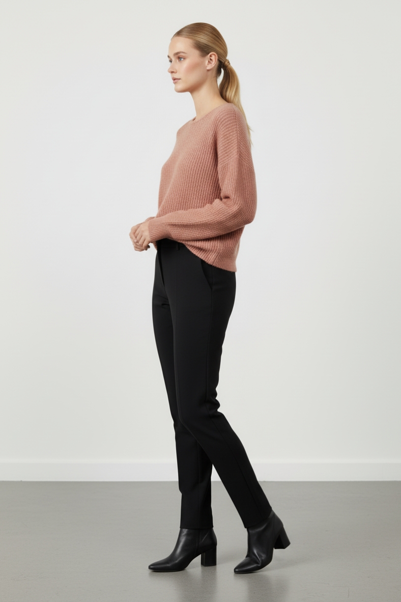 Il colore delicato e versatile della maglia la rende facilmente abbinabile a una varietà di outfit. Provala con un paio di pantaloni neri slim fit per un look elegante e professionale, oppure con jeans skinny per un’uscita informale con gli amici. Gli stivaletti in pelle nera completeranno il tuo look, aggiungendo un tocco di classe e raffinatezza.