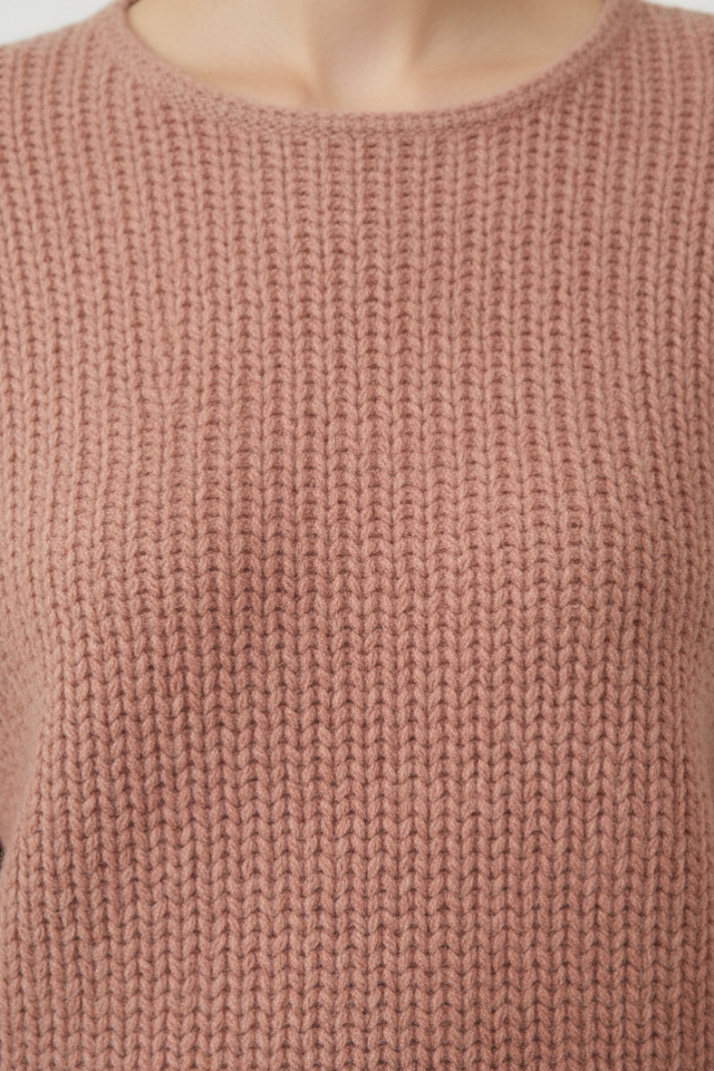 Dettagli come il collo a giro e le maniche lunghe offrono un tocco di semplicità e raffinatezza, mentre la lavorazione a coste dona carattere e movimento al capo. Questa maglia è perfetta per essere indossata sopra una camicia bianca per un look stratificato, oppure da sola per un effetto più casual.