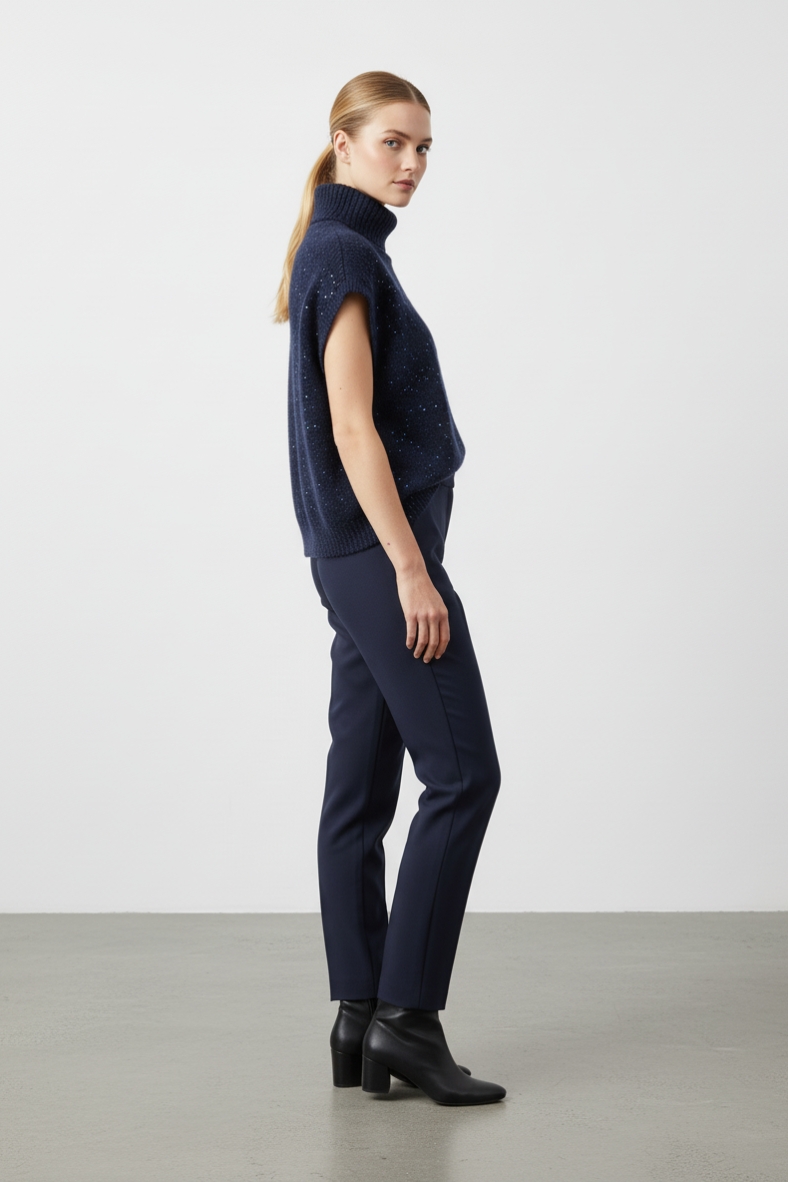 La maglia smanicata con collo alto è un must-have per la stagione. Realizzata con una miscela di lana e poliestere, offre calore e comfort senza rinunciare allo stile. Perfetta per ogni occasione.