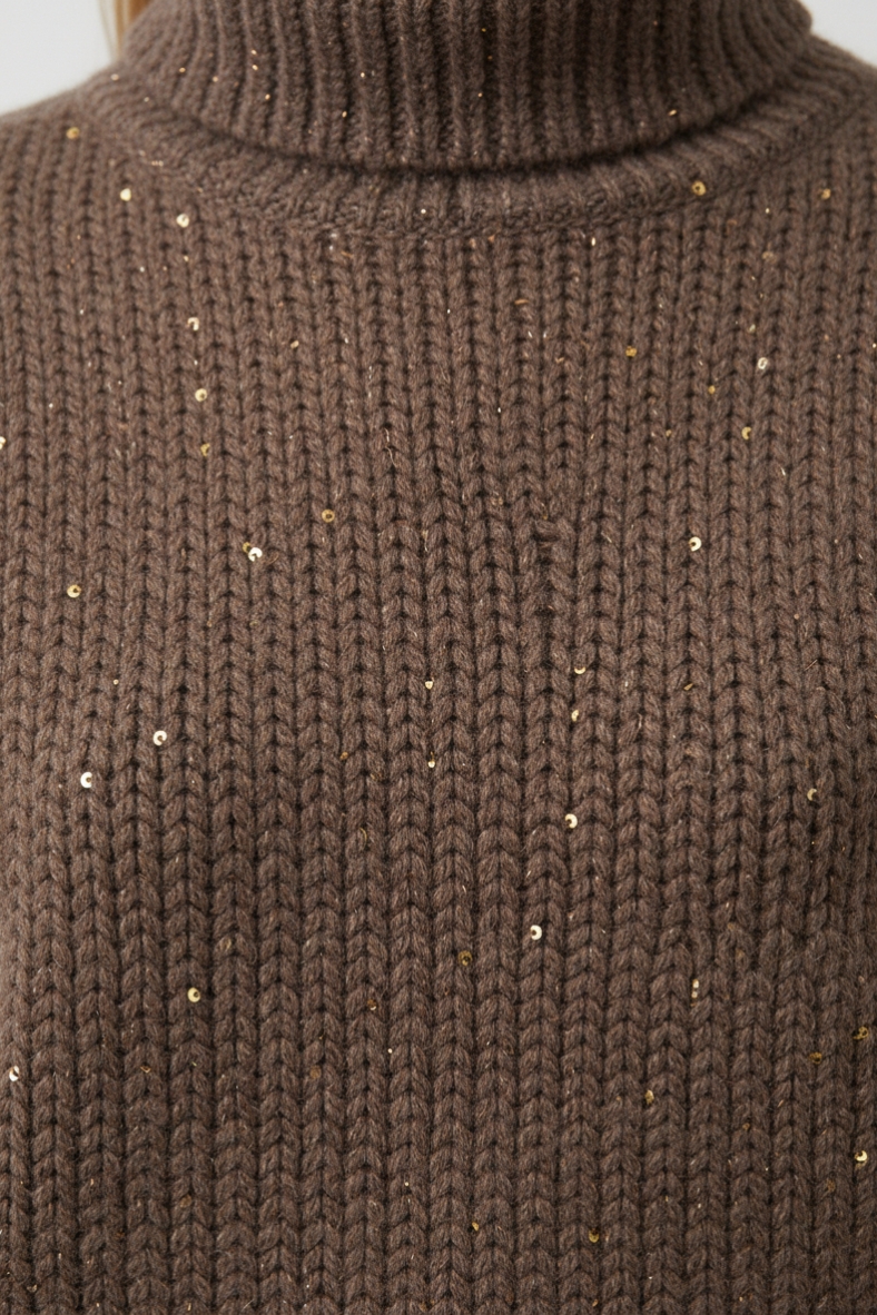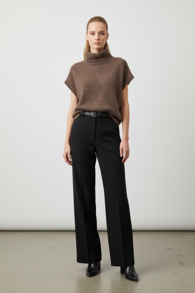 Il collo alto non solo aggiunge un tocco di sofisticatezza, ma offre anche una protezione extra dal freddo. I dettagli luminosi, come le piccole paillettes, donano un tocco di brillantezza, rendendo questa maglia ideale per le serate più speciali. Puoi abbinarla a pantaloni eleganti per un look da ufficio impeccabile o a jeans skinny per un’uscita informale con amici.