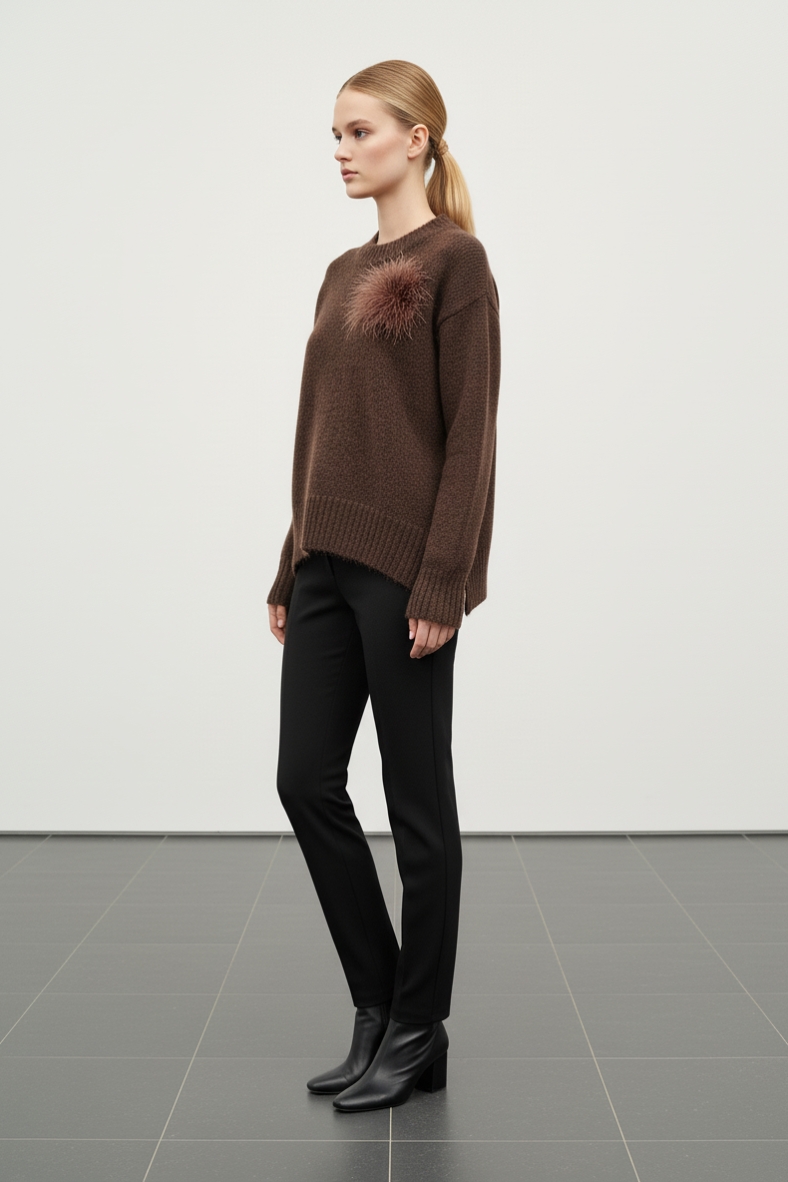 Questa maglia oversize con spilla è l'ideale per chi cerca comfort e stile. Con un design unico e dettagli ricercati, è perfetta per ogni occasione.