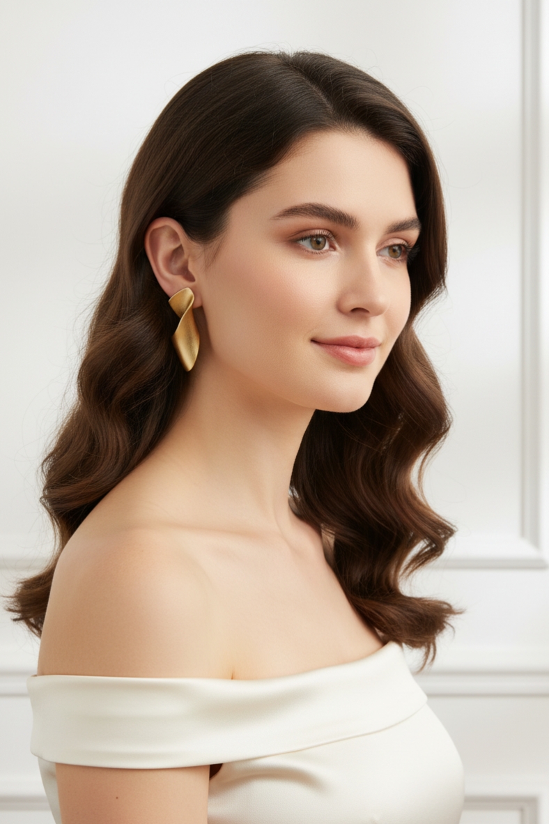 Questi orecchini in metallo ondulato sono l'accessorio perfetto per chi desidera un tocco di eleganza e originalità. Leggeri e raffinati, si adattano a qualsiasi outfit.