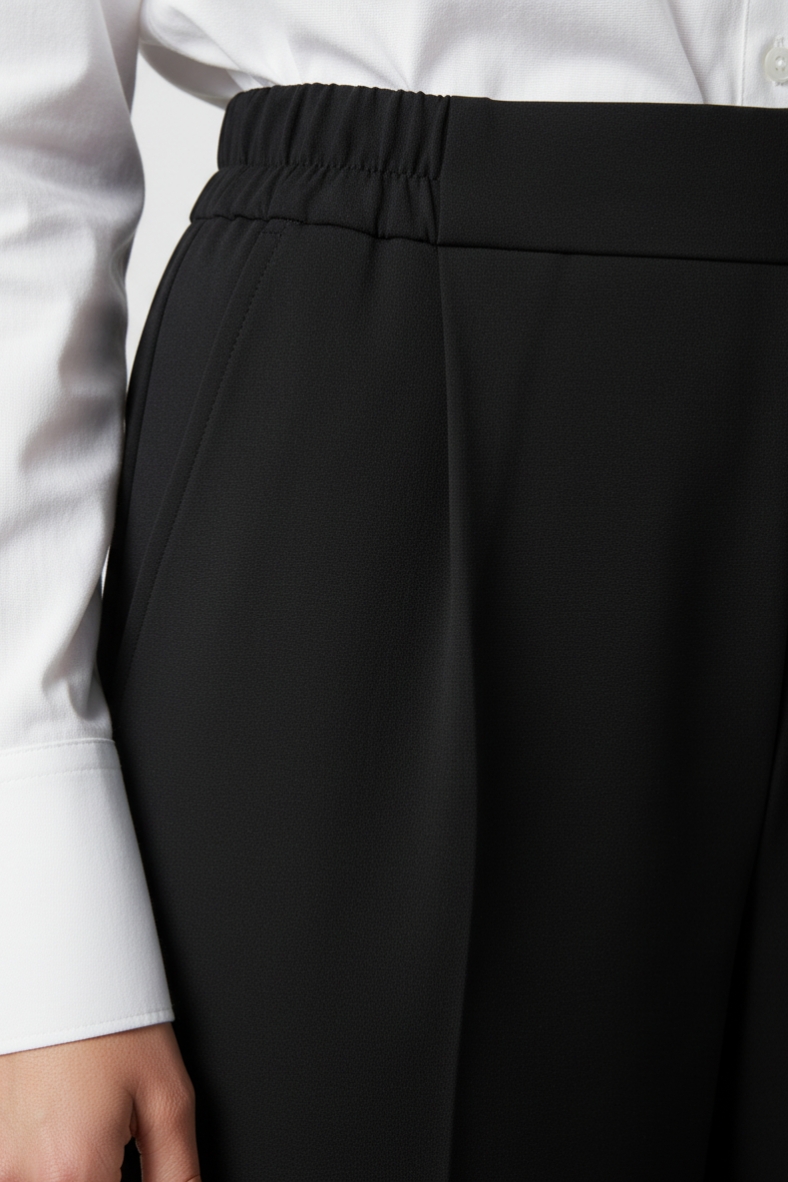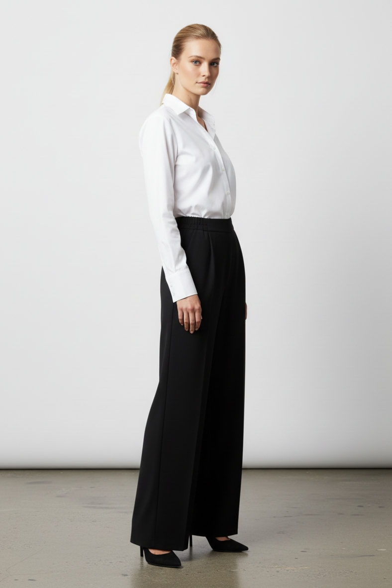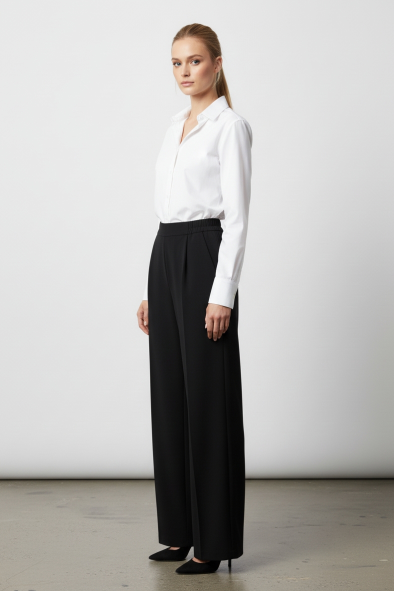 Per un look impeccabile, abbina il pantalone a una camicia in seta o a un top aderente, creando un contrasto di silhouette che esalta la tua figura. Completa il tuo outfit con un blazer strutturato e un paio di décolleté per un tocco di classe. Non dimenticare di aggiungere accessori minimalisti, come orecchini a cerchio e una borsa a tracolla, per un effetto finale raffinato.