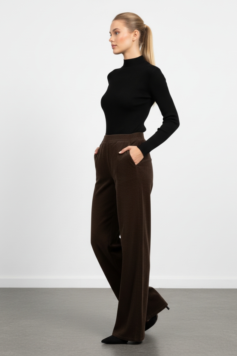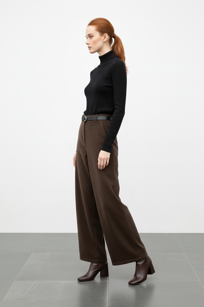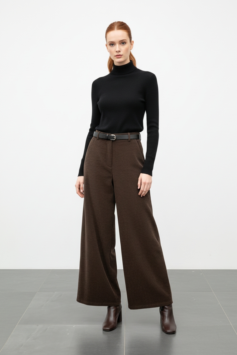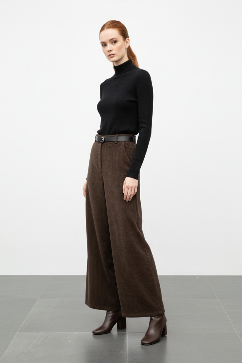 Il pantalone ampio è estremamente versatile e può essere facilmente abbinato a giacche strutturate o cappotti oversize per un look chic e alla moda. Non dimenticare di accessorizarlo con una borsa a tracolla e gioielli minimalisti per un tocco finale impeccabile. Scegli questo pantalone per un look che unisce comfort e stile, perfetto per le giornate autunnali e invernali.