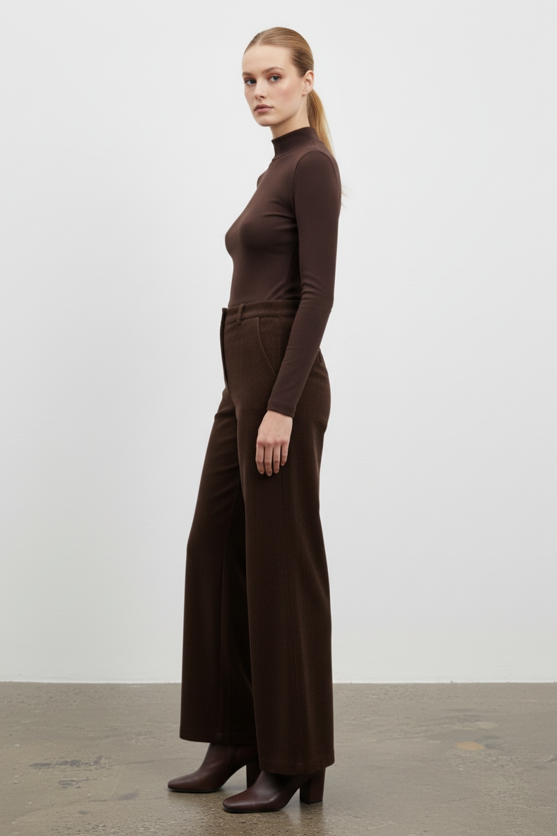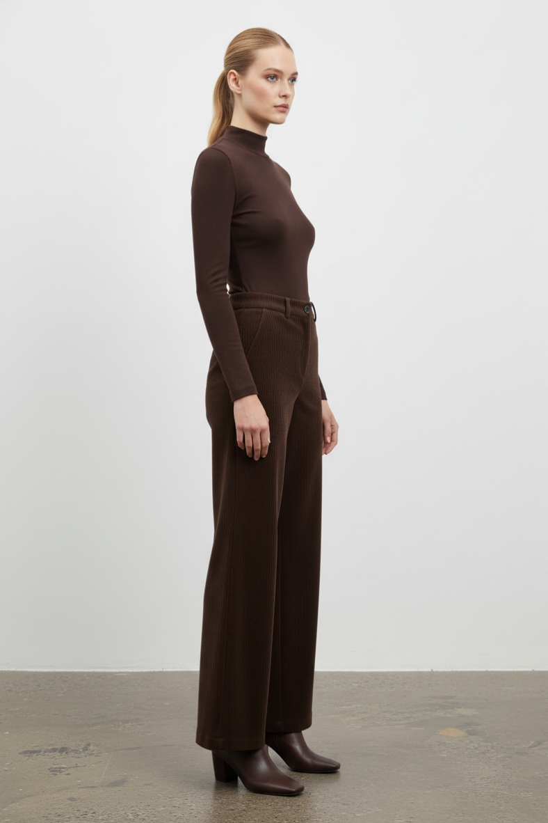 Il pantalone in velluto a costine è l’alleato perfetto per chi desidera un look sofisticato e contemporaneo. Realizzato con una composizione di alta qualità, questo pantalone offre una vestibilità comoda e un tocco di eleganza. La cintura in vita non solo valorizza la silhouette, ma aggiunge anche un dettaglio distintivo che rende questo capo unico. La sua tonalità neutra si abbina facilmente a una varietà di top, dai maglioni in cashmere ai bluse in seta, permettendo di creare outfit versatili per ogni occasione. Indossalo con una camicia aderente per un look da ufficio impeccabile o con un dolcevita per una serata casual ma chic. Le linee ampie e fluide del pantalone conferiscono movimento e comfort, rendendolo ideale per lunghe giornate. Completa il tuo outfit con stivali alti e una borsa a tracolla per un tocco finale di stile. Non perdere l’occasione di aggiungere questo pantalone ampio con cintura al tuo guardaroba: è un capo che non passerà mai di moda e che ti accompagnerà in ogni stagione.
