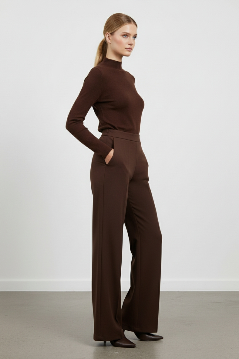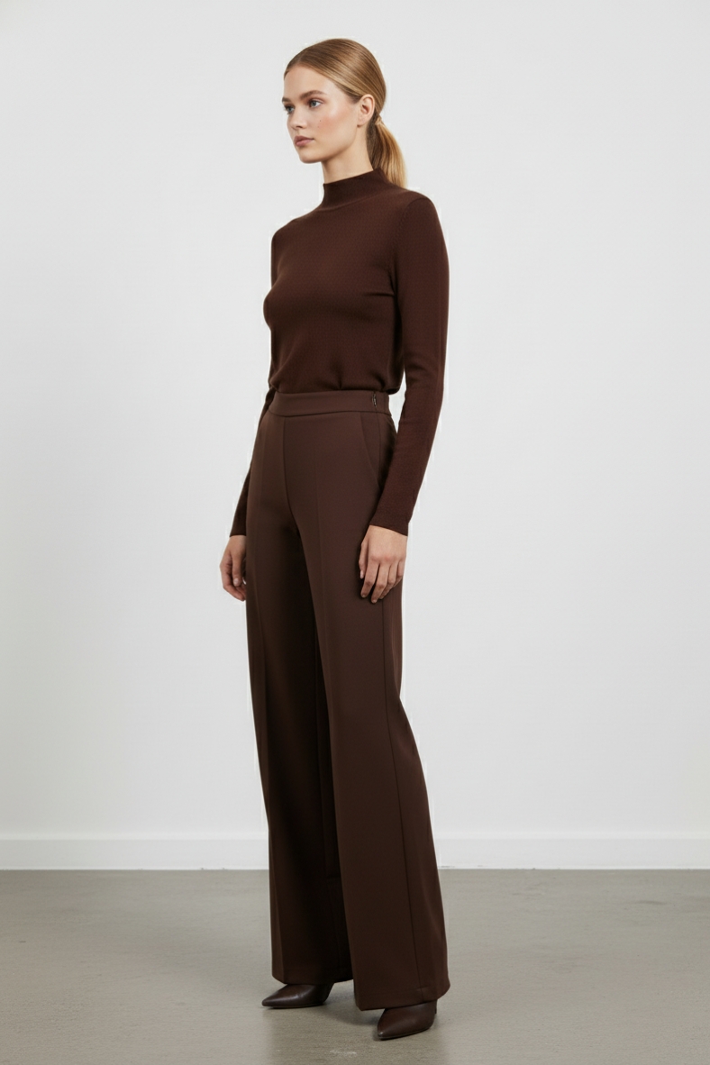 Il pantalone elegante a palazzo è il capo che non può mancare nel tuo guardaroba autunnale. Realizzato in morbida viscosa, questo pantalone offre una vestibilità fluida e un comfort senza pari. La sua silhouette ampia e sofisticata esalta la figura, rendendolo perfetto per ogni occasione, dal lavoro a una serata speciale. I dettagli minimalisti, come le tasche laterali e la vita alta, conferiscono un tocco di eleganza, mentre il taglio dritto permette di abbinarlo facilmente a diverse tipologie di scarpe.