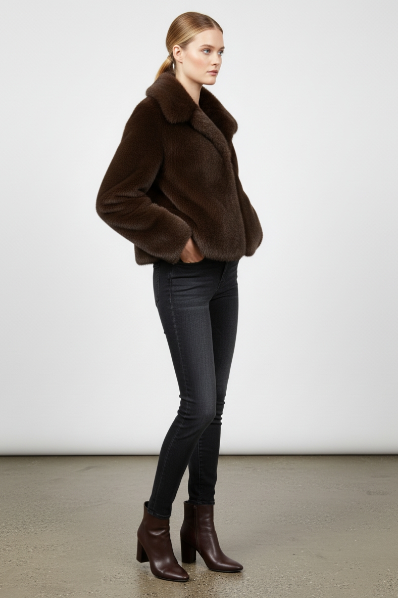 La giacca in pelliccia corta è l'elemento chiave del tuo guardaroba invernale. Con il suo design sofisticato e caldo, è ideale per affrontare le temperature più fredde con stile.