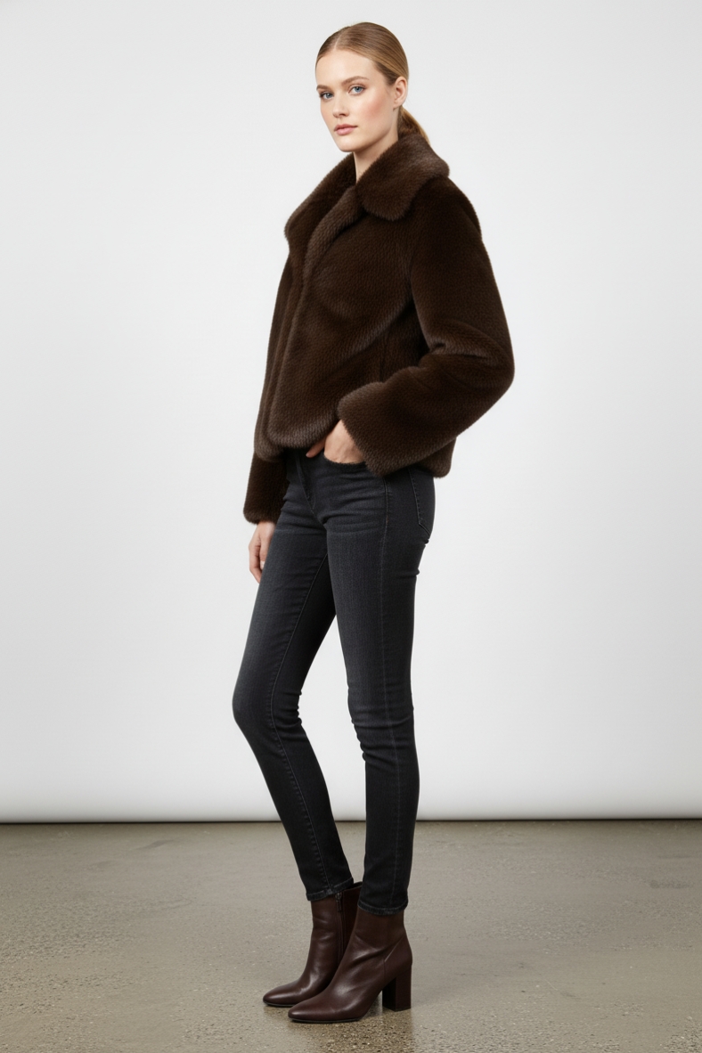 Non dimenticare di completare il tuo outfit con stivali in pelle nera e una borsa a tracolla per un look urbano e contemporaneo. Questa giacca è perfetta anche per le serate più fredde, quando desideri rimanere calda senza rinunciare allo stile. Scegli la giacca in pelliccia corta per un inverno all’insegna della moda e del comfort.