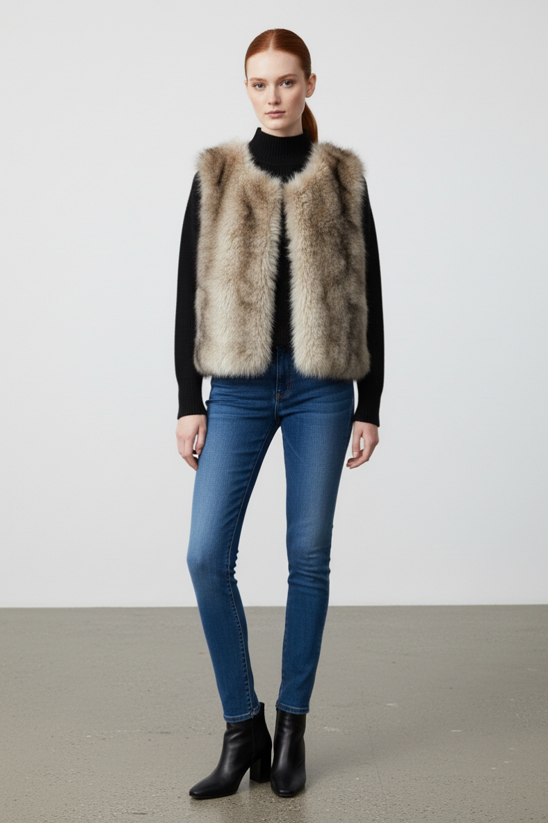 Aggiungi un tocco di eleganza al tuo guardaroba con il nostro gilet in pelliccia. Questo capo versatile è ideale per creare look sofisticati e alla moda.