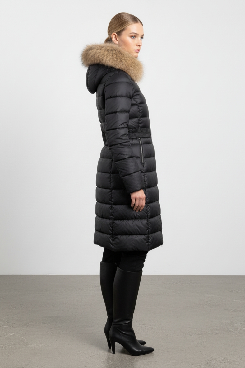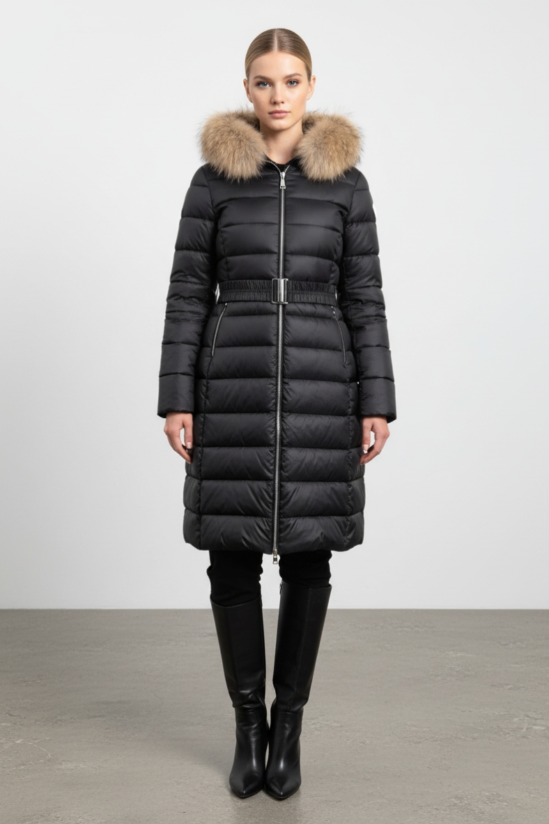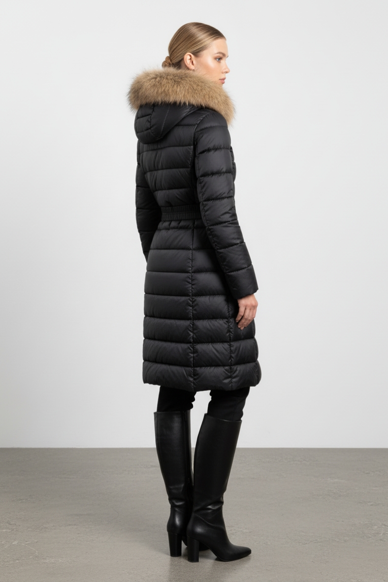 Il piumino lungo con cintura è l'ideale per le giornate invernali. Con il suo design elegante e il caldo colletto in pelliccia, ti terrà al caldo senza rinunciare allo stile.