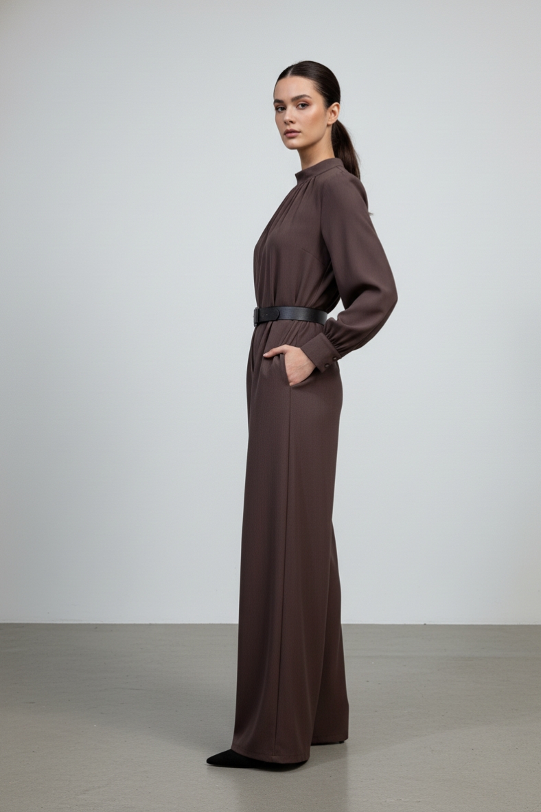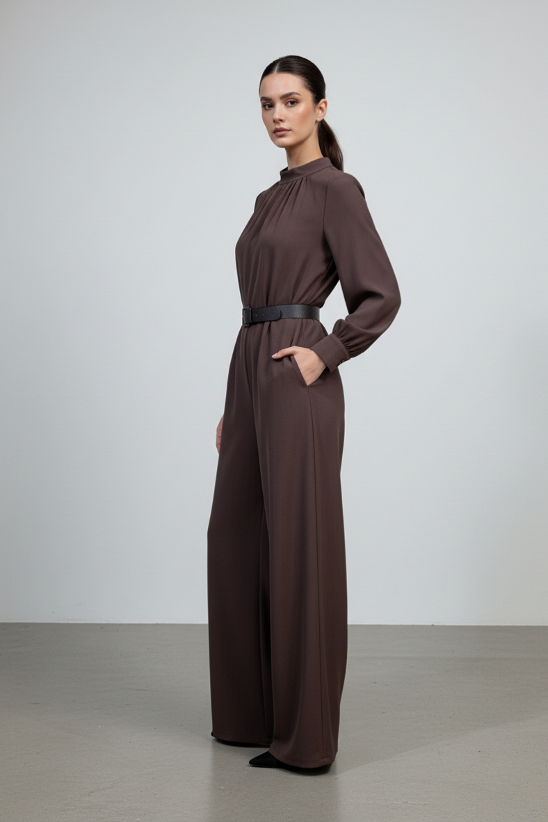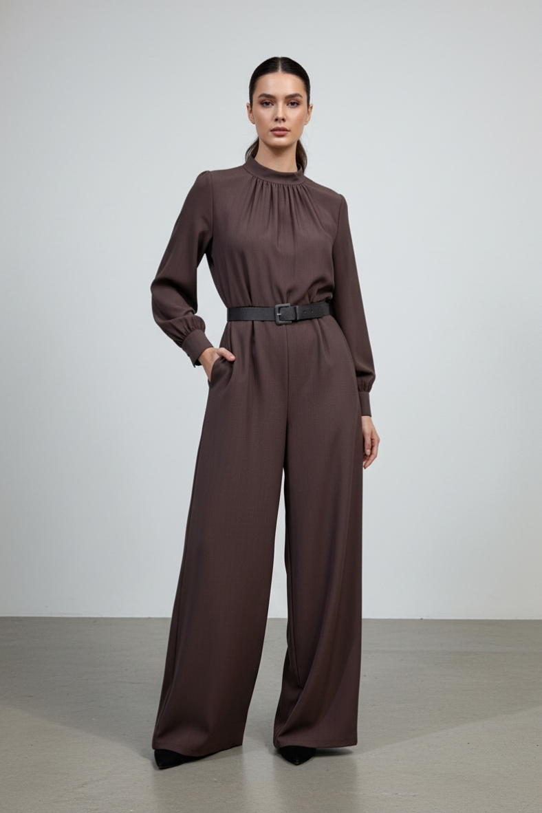 La tuta con pantalone ampio è un must-have per ogni donna che desidera unire comfort e stile. Caratterizzata da una vestibilità ampia e fluida, questa tuta presenta un colletto a giro e maniche lunghe, perfette per le fresche giornate autunnali. La cintura in vita non solo definisce la silhouette, ma aggiunge anche un tocco di eleganza al look complessivo. Realizzata in poliestere di alta qualità, il tessuto è morbido al tatto e scivola delicatamente sulla pelle, offrendo una sensazione di lusso ad ogni indossata.