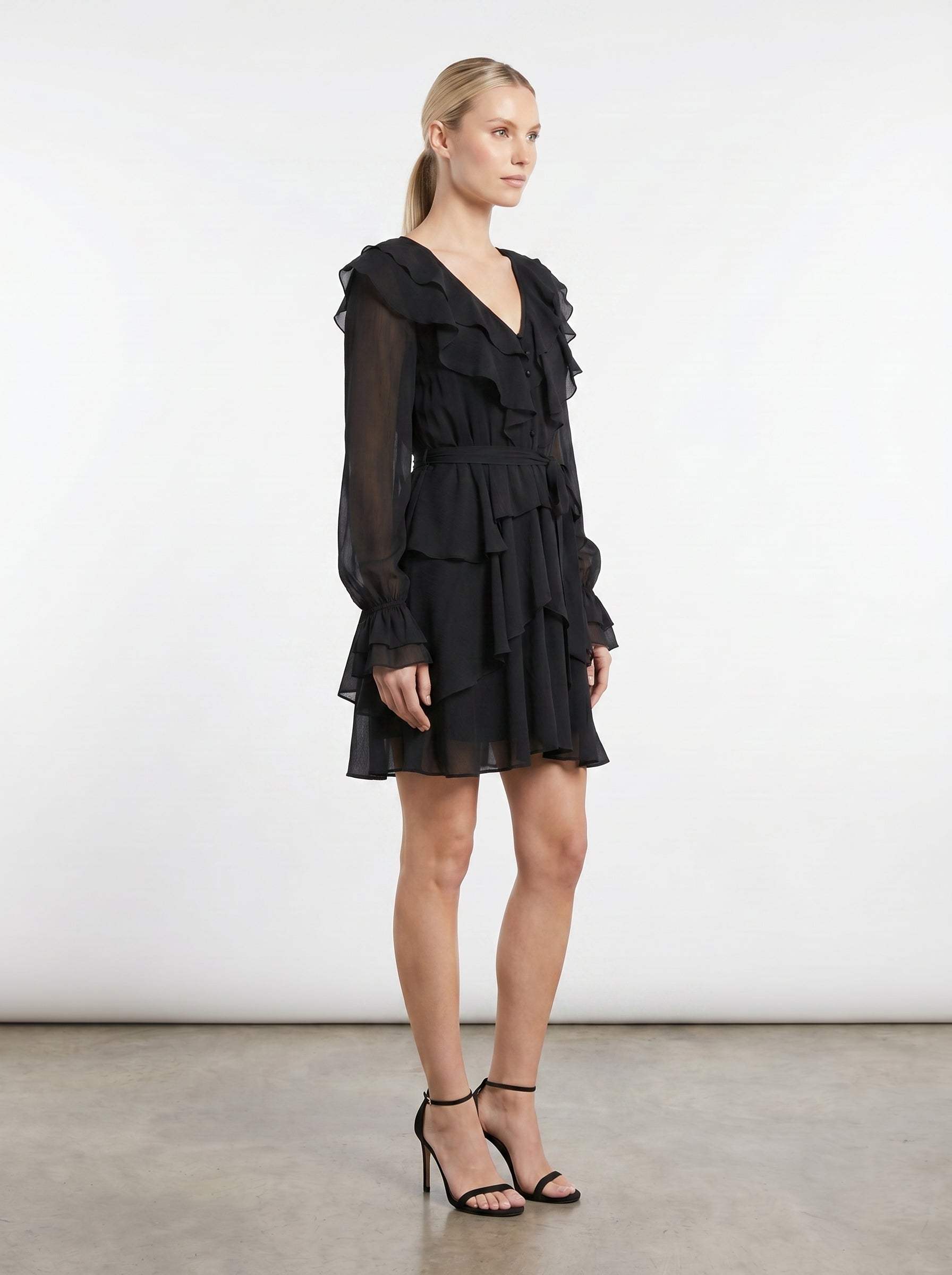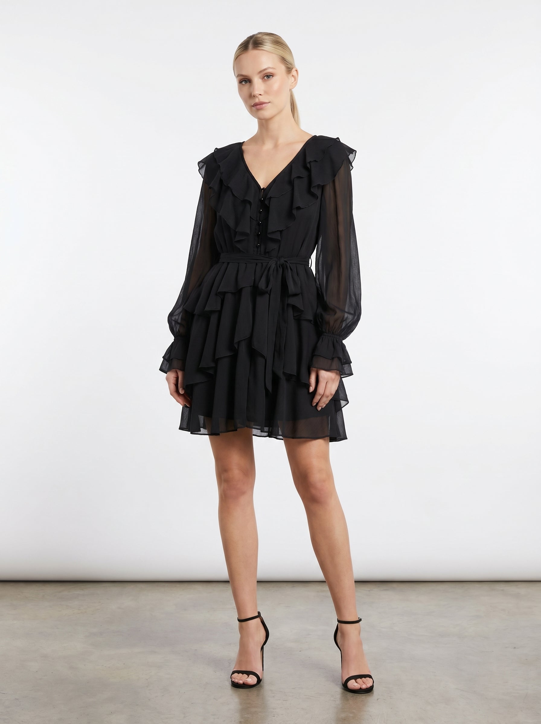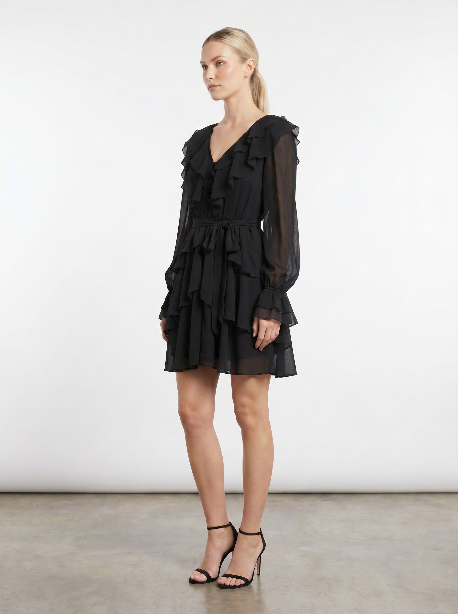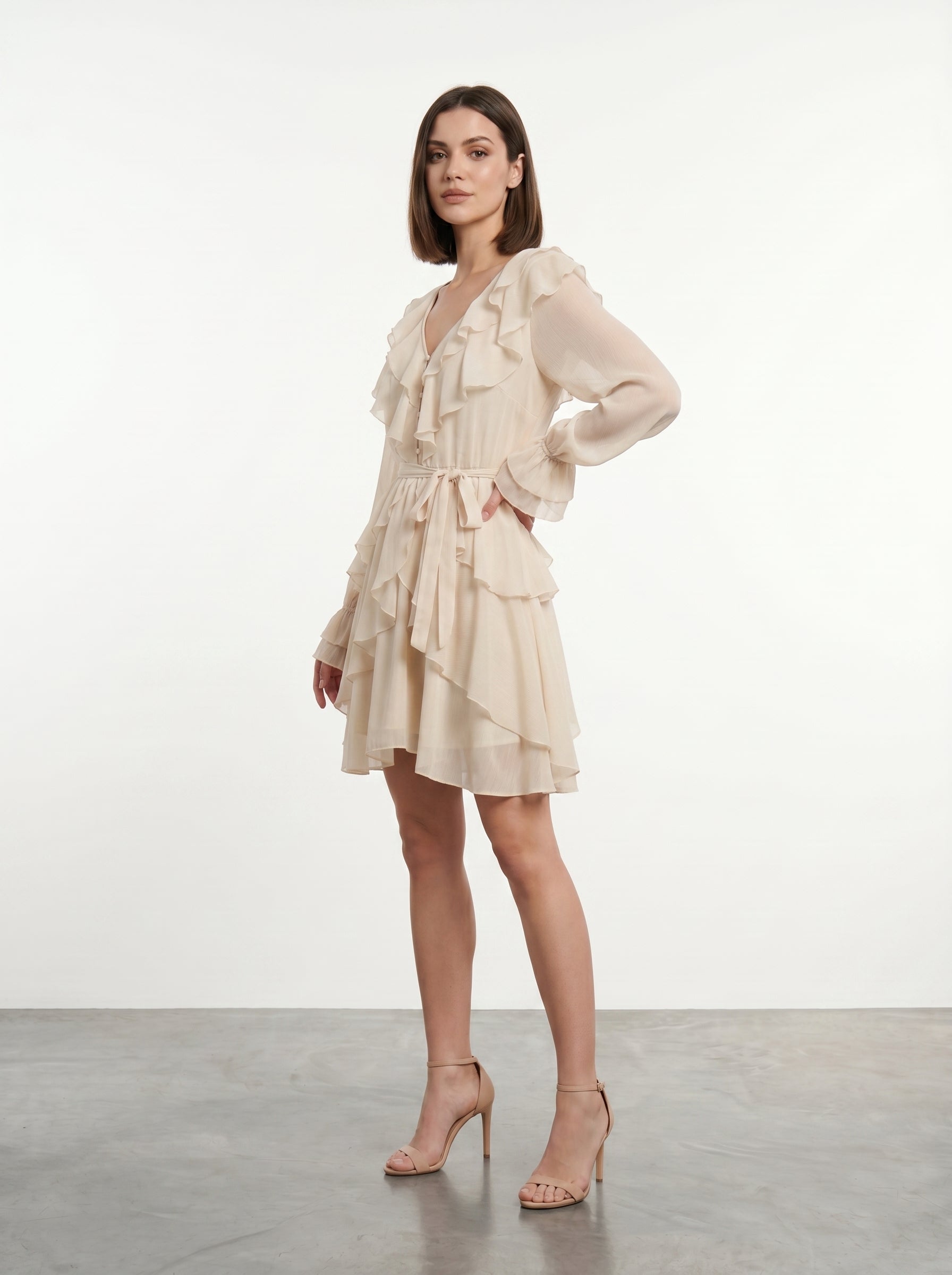 Abito corto a balze con volant